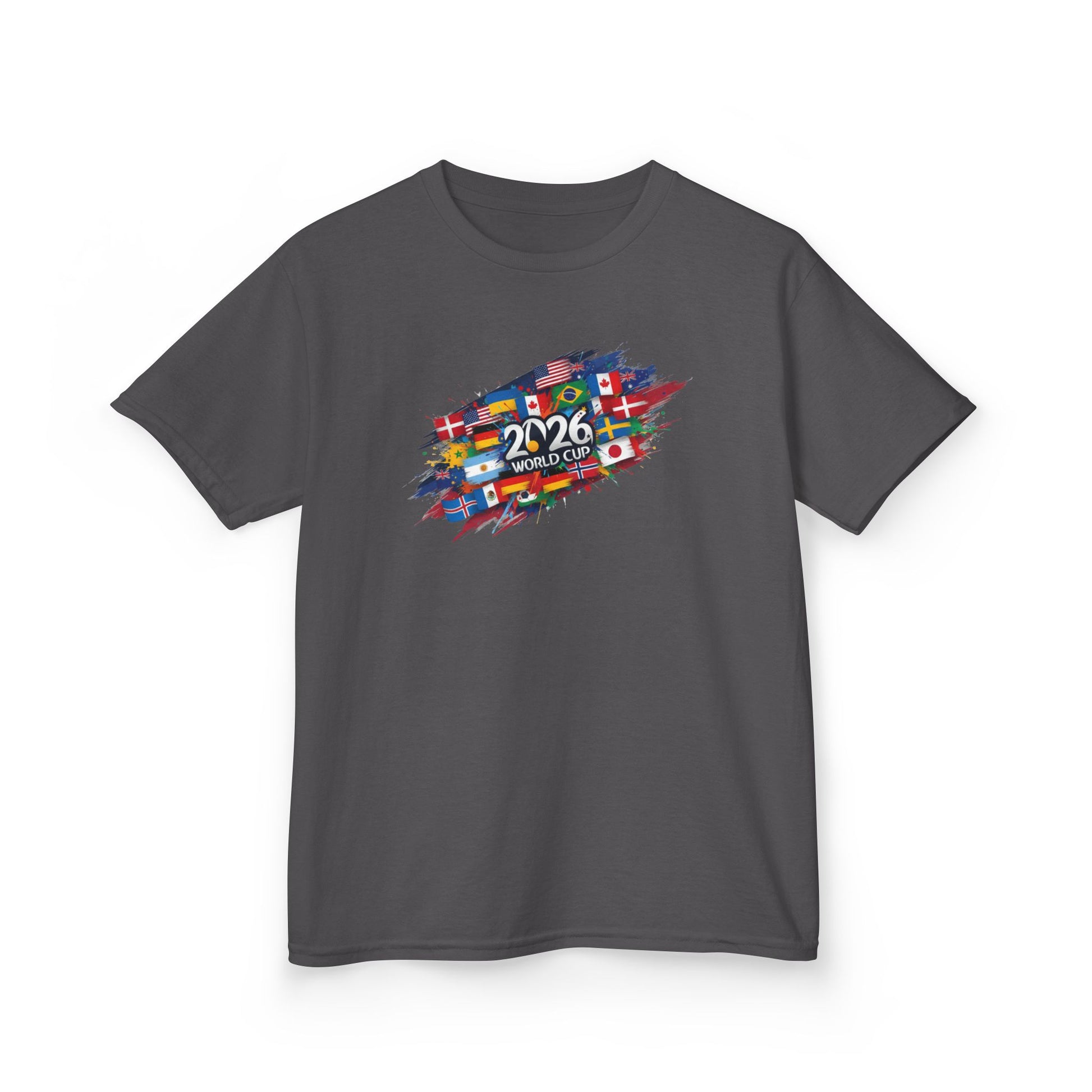Perfect as a 2026 soccer fan shirt for kids, international flags tee, birthday gift, back-to-school top, or holiday present, this shirt celebrates creativity, culture, and youthful energy in a fun, age-appropriate way.