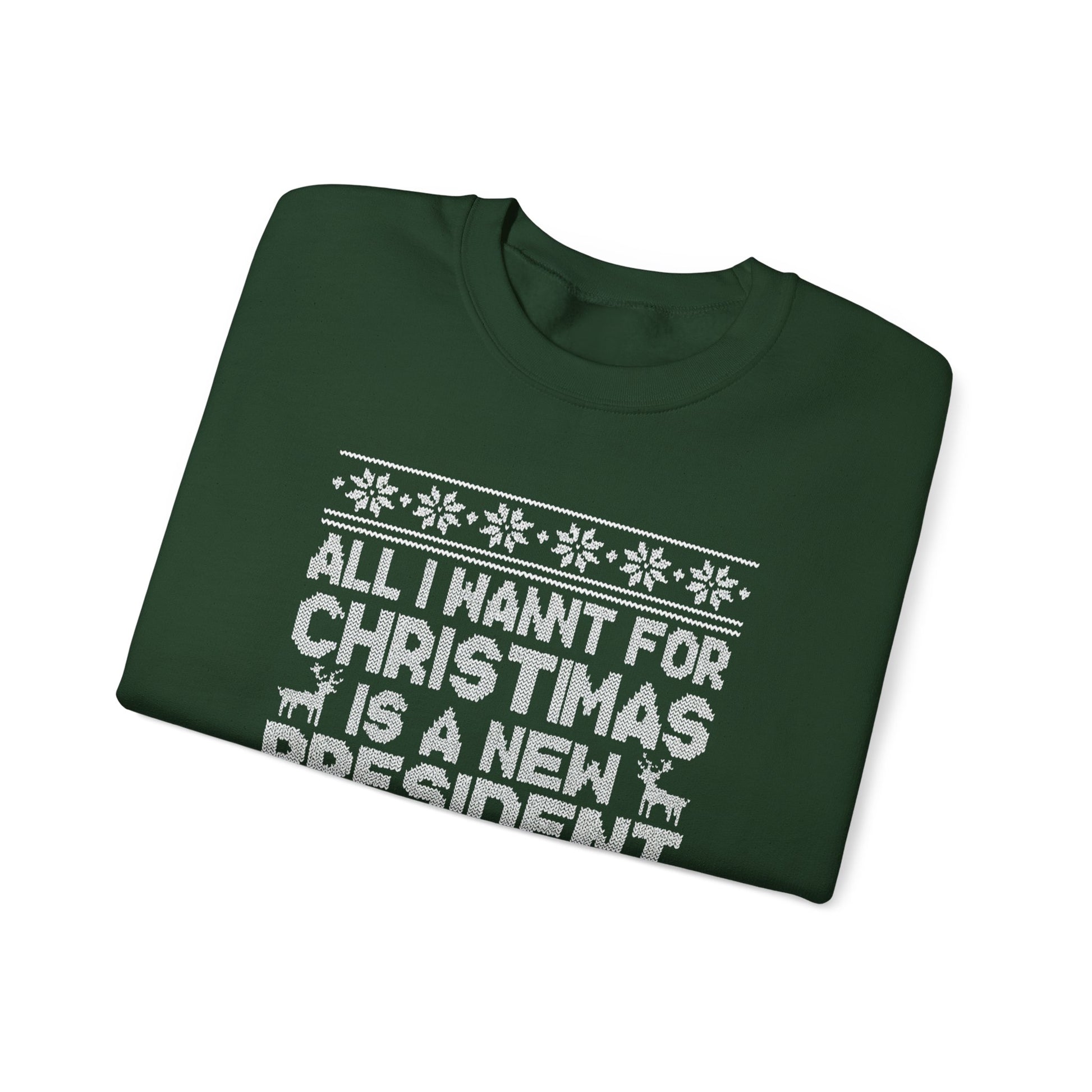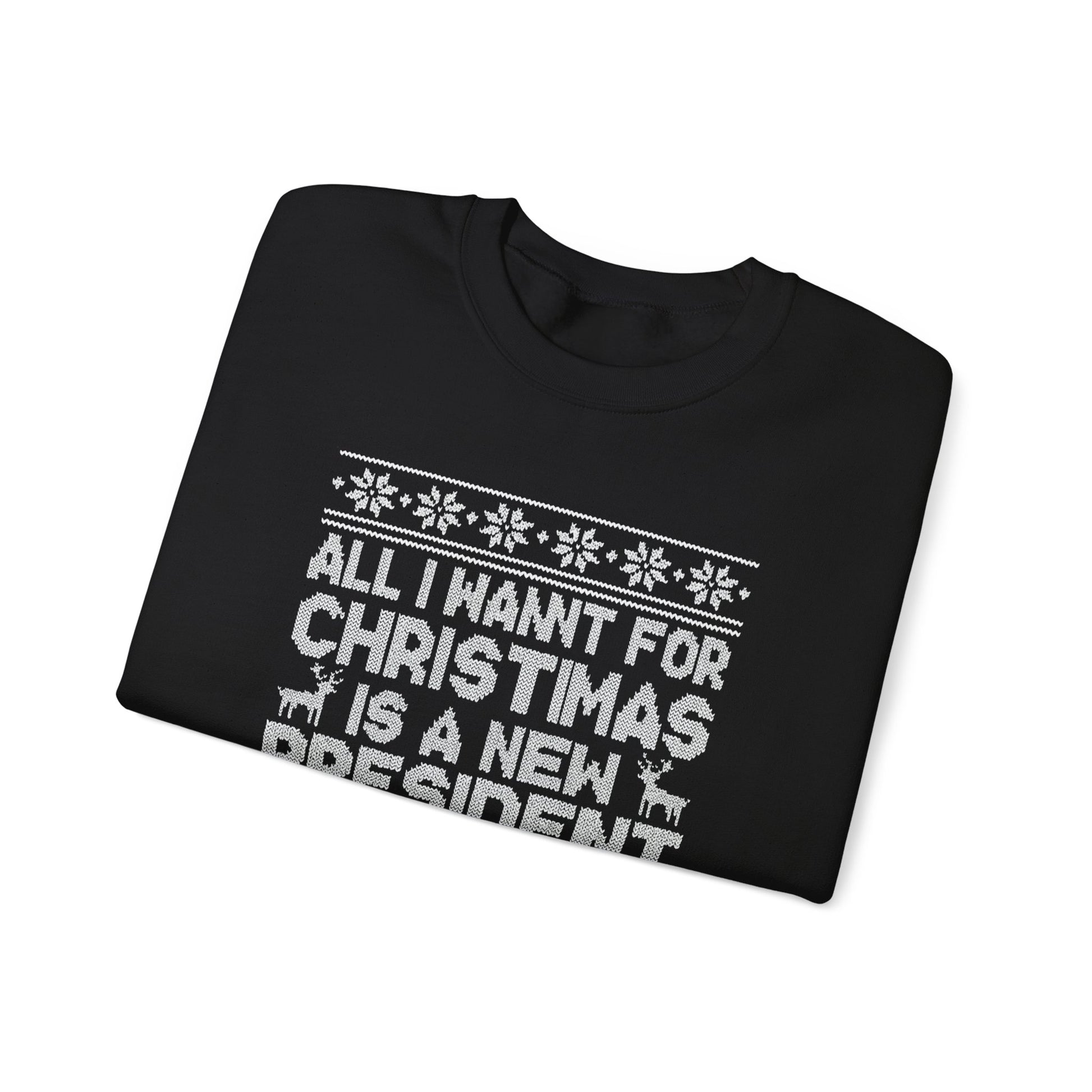 All I Want for Christmas Is a New President Sweatshirt, Funny Political Holiday Sweater, Anti Trump Crewneck, Christmas Gift for Her