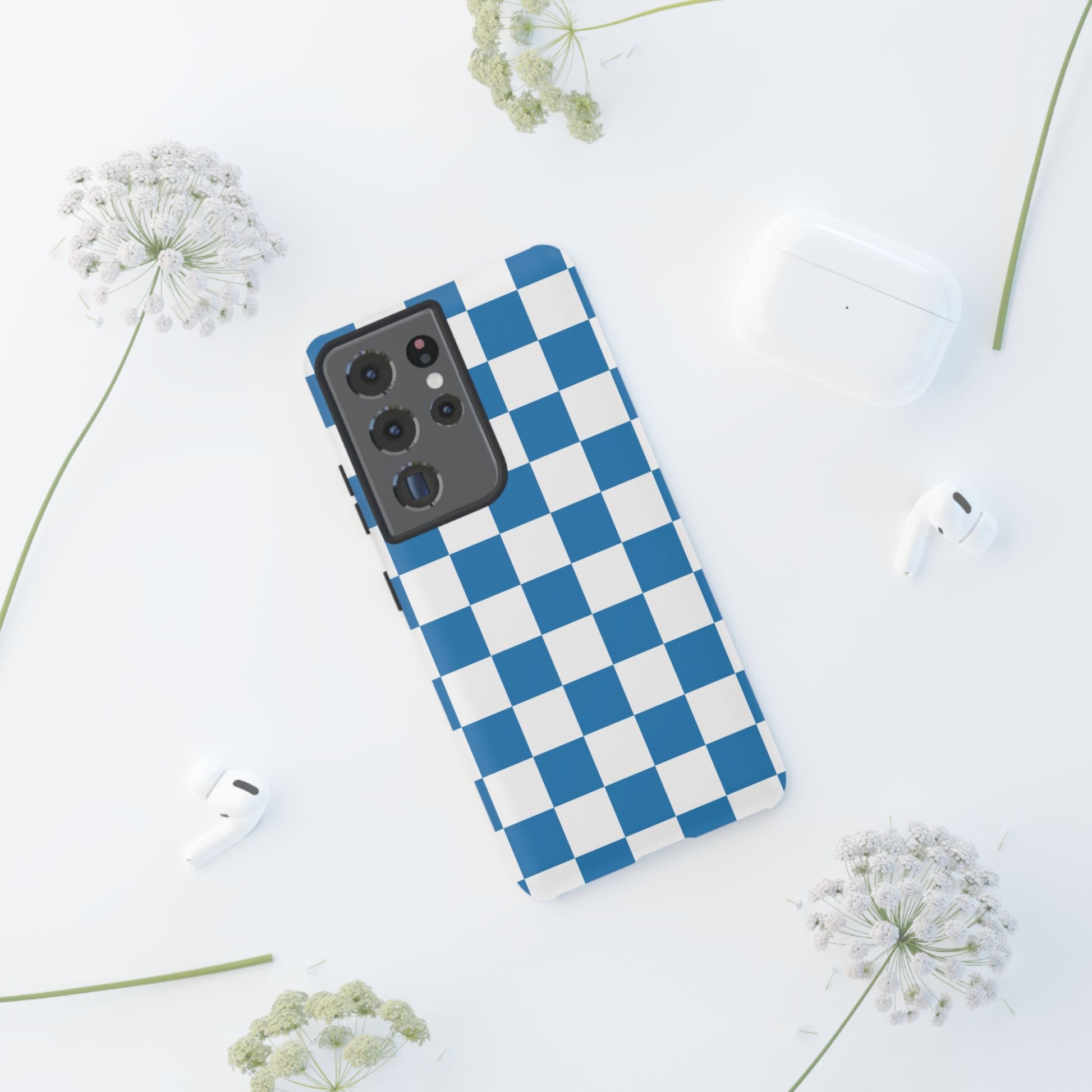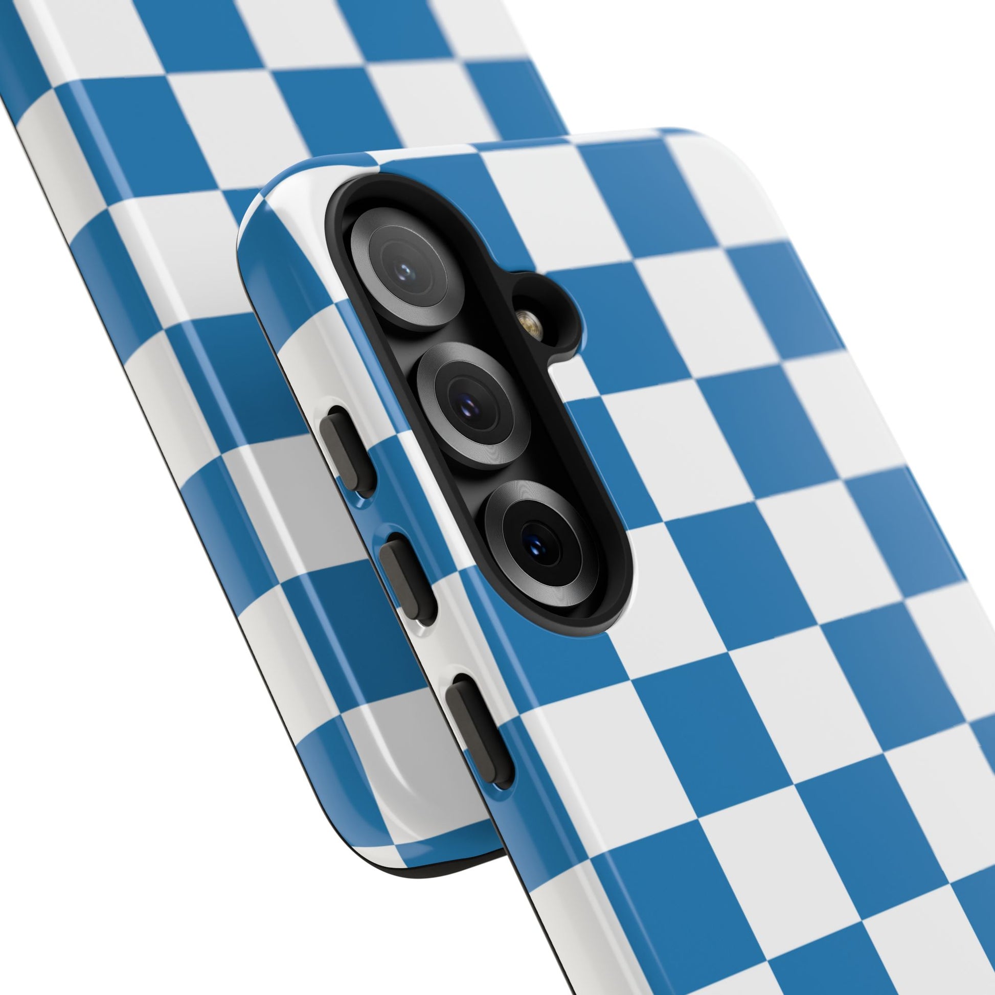 Blue Checkerboard Phone Case, Samsung Galaxy S25, S25 Plus, S24, S24 Plus, S24 Ultra, S23, S22, S22 Plus, S21 Ultra, S21 FE, S20+