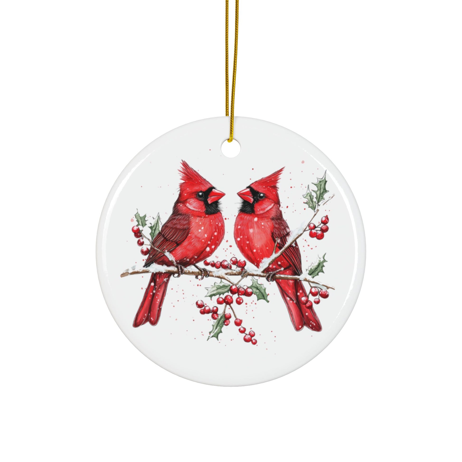 Bring a touch of winter beauty and quiet reflection to your holiday décor with this Cardinal Bird Ceramic Ornament. Printed on smooth, glossy ceramic, each ornament features vivid red cardinals perched on frosted berry branches, captured in lifelike detail that feels hand-painted and full of warmth.