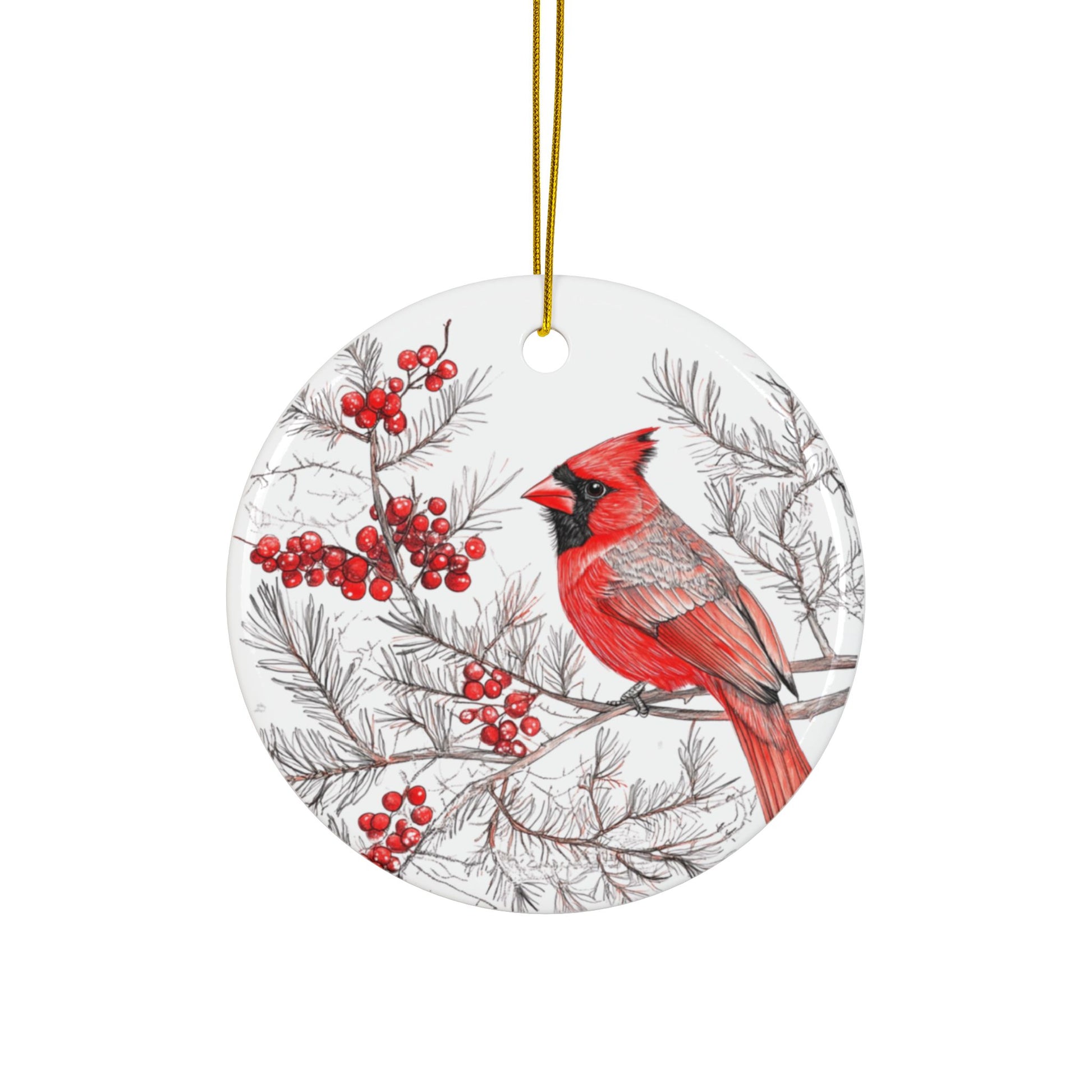 Cardinal Birds Christmas Ornament, Double-Sided Ceramic Cardinal Decoration, Winter Cardinal Holiday Ornament, Merry Christmas Keepsake