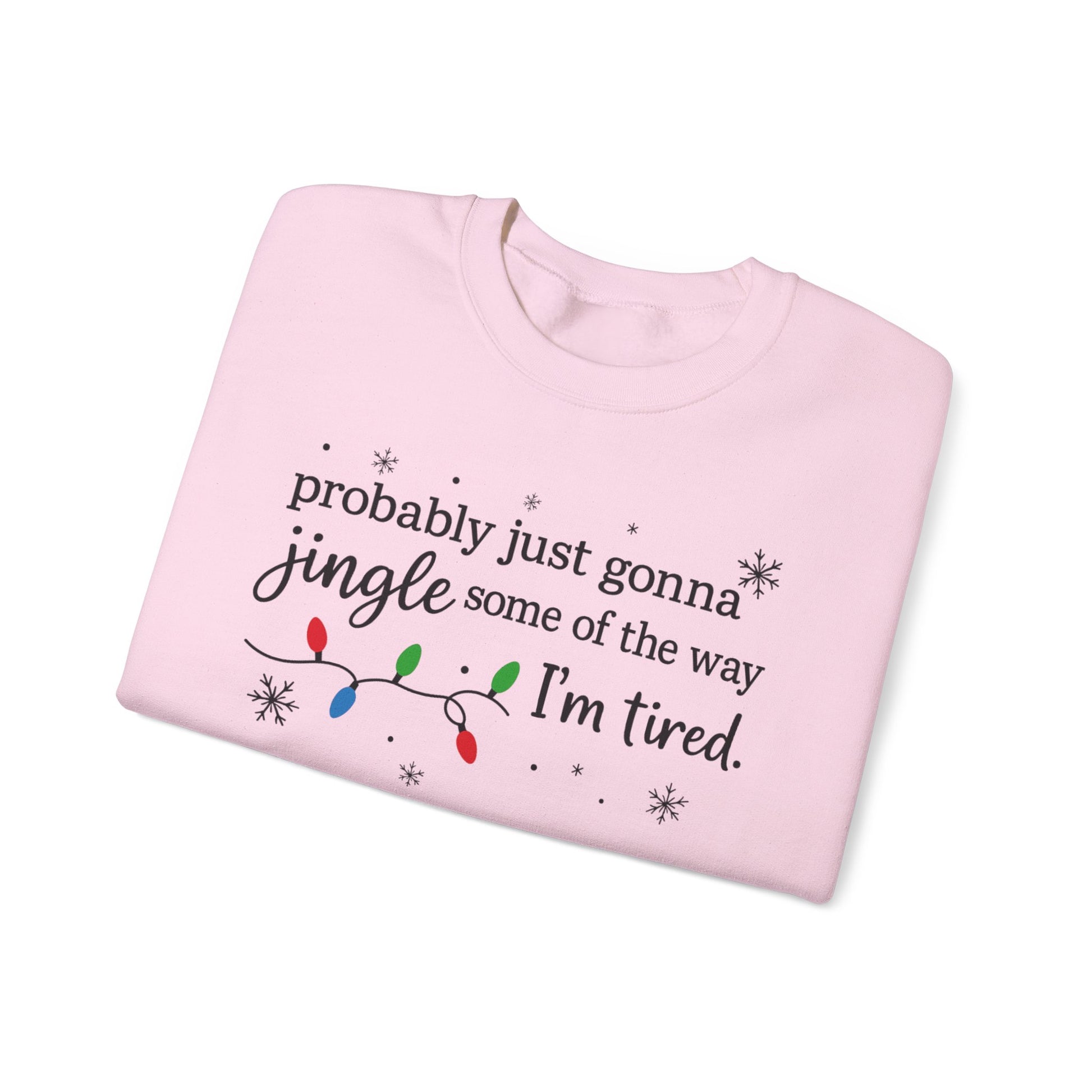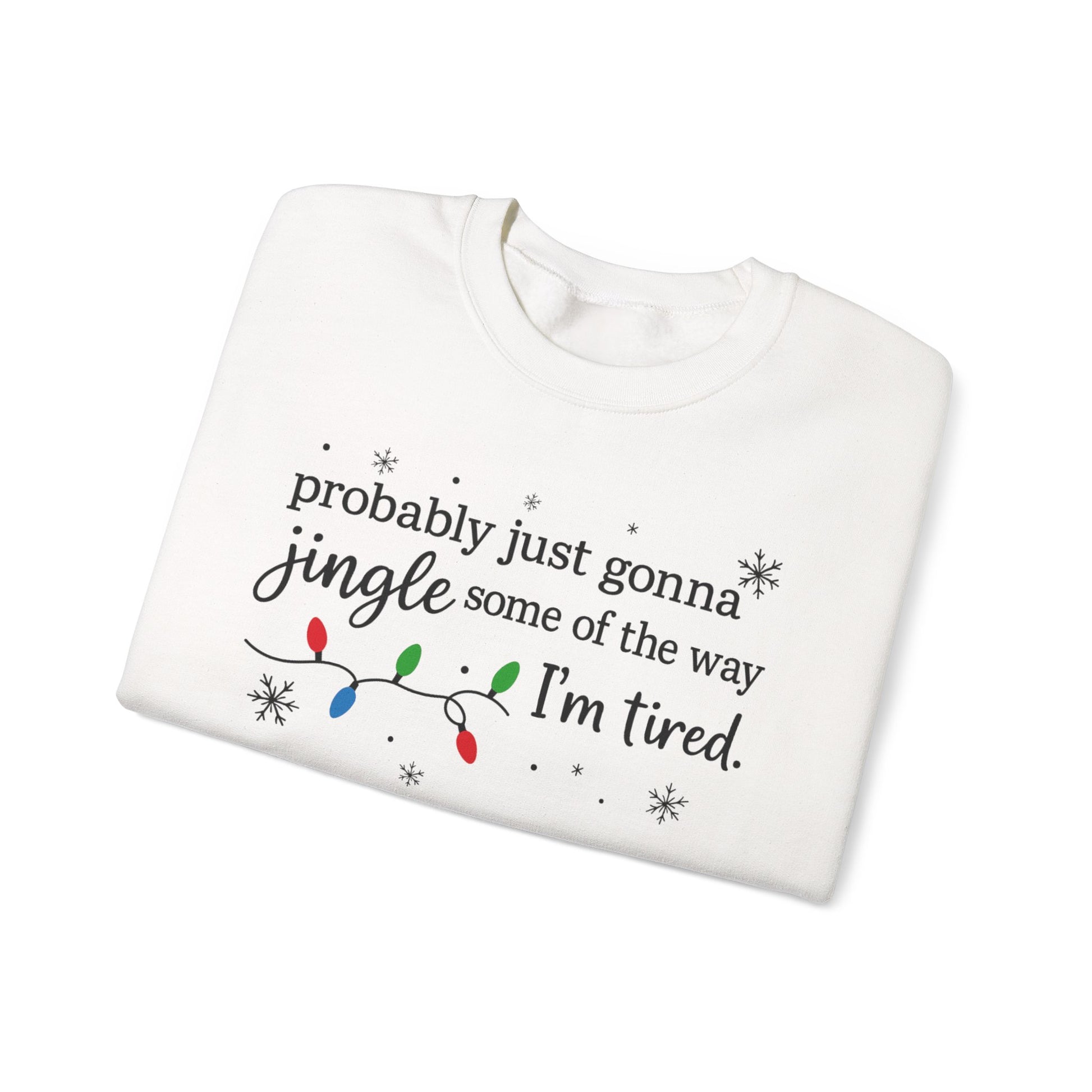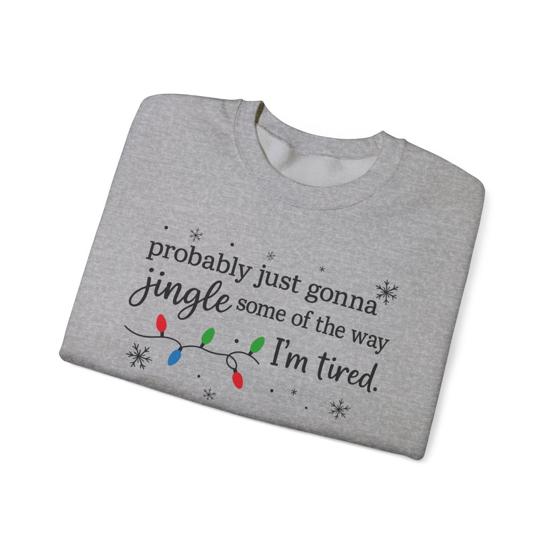 • Funny Christmas Sweatshirt-“Probably Just Gonna Jingle Some of the Way” design — perfect for tired parents, busy shoppers, and holiday humor lovers.