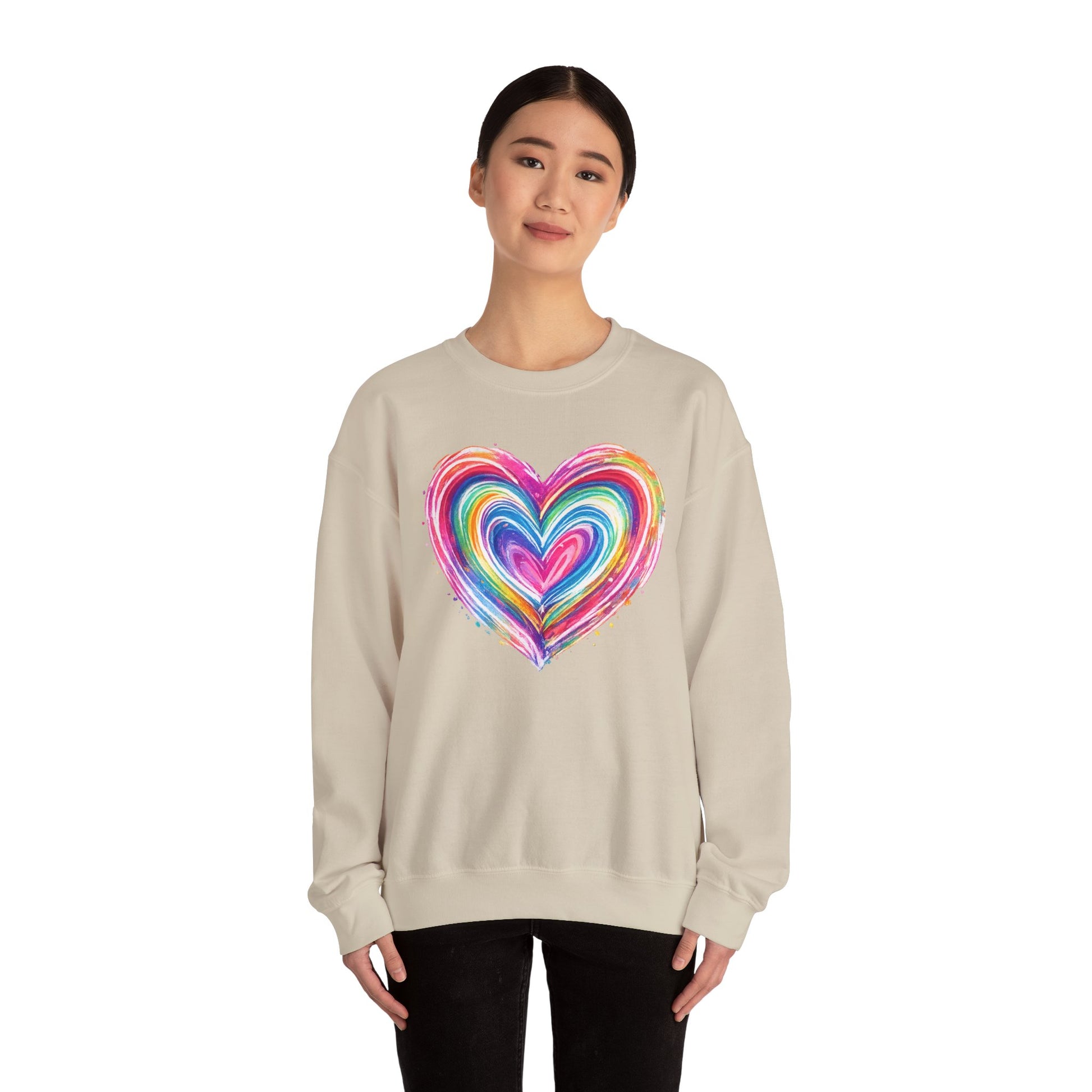 Soft, expressive, and easy to love — the Cute Heart Brushstroke Sweatshirt is made for moments that call for warmth and meaning. Featuring a hand-painted style rainbow heart at the center chest, this cozy crewneck delivers a gentle message of love, joy, and connection without feeling loud or overdone. It’s the kind of piece you reach for on quiet mornings, casual dates, or evenings wrapped in comfort.