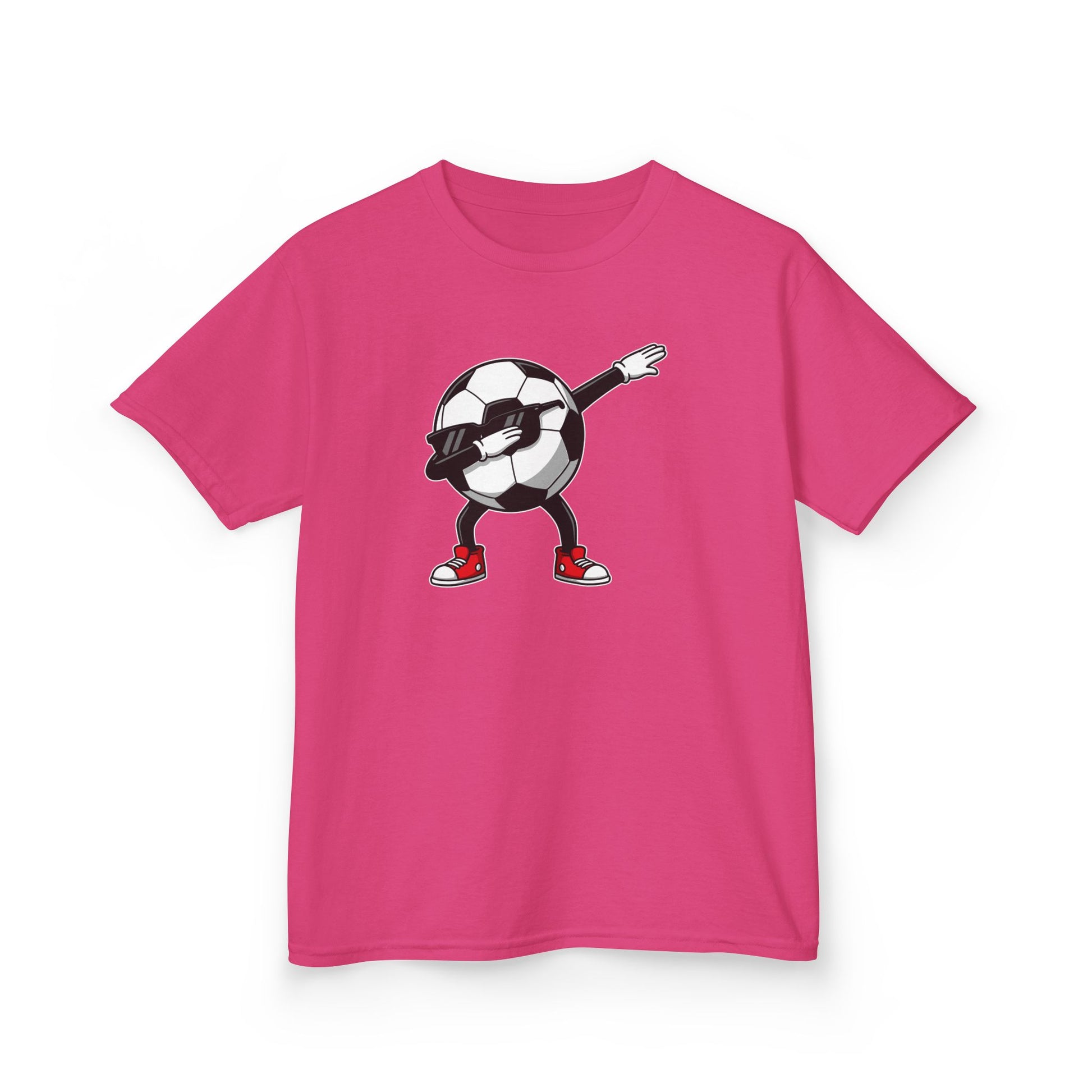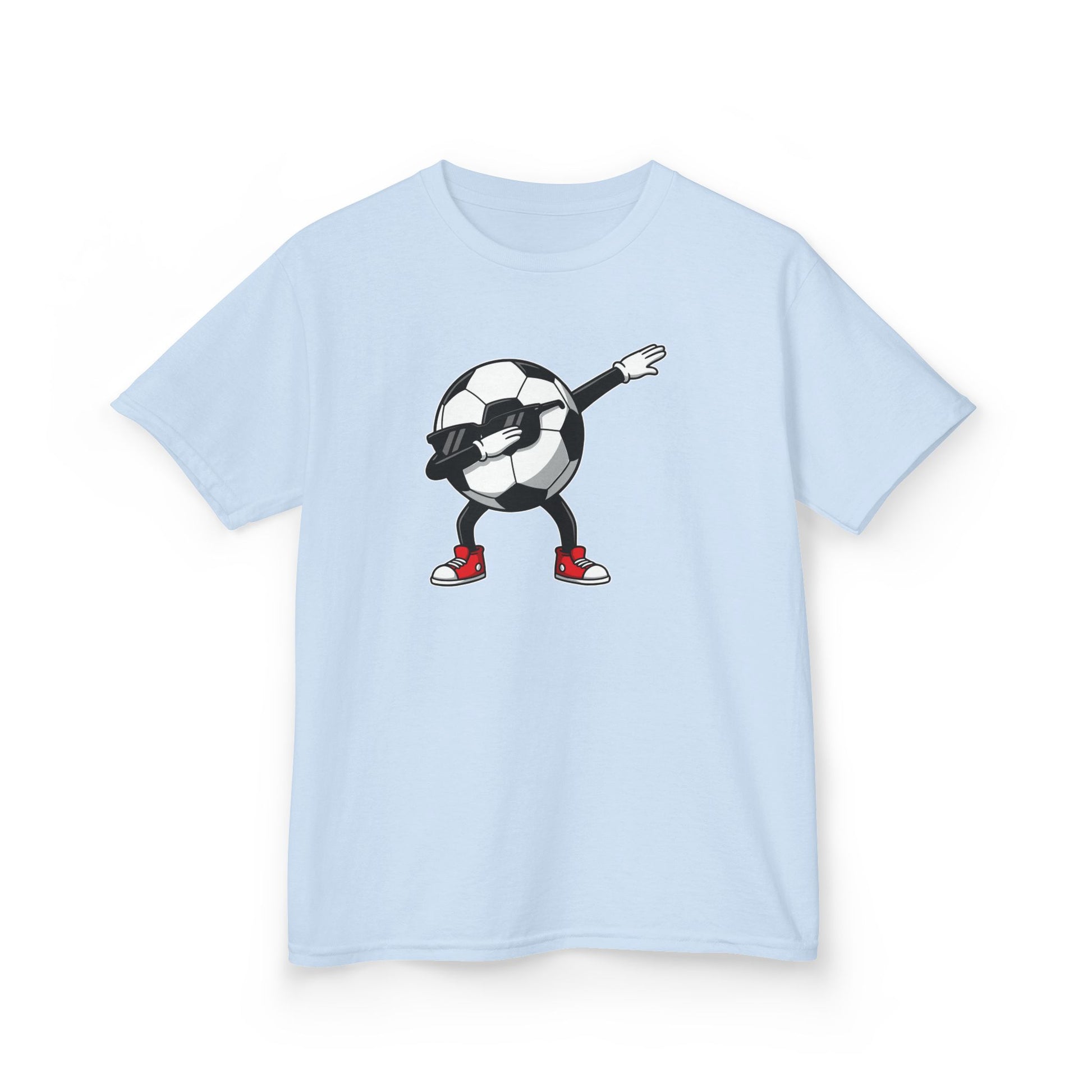 Bring sporty fun to your child’s wardrobe with this Dabbing Soccer Ball Kids Tee. Featuring a bold cartoon soccer ball mid-dab with sneakers and playful attitude, this tee adds personality to practice days, playground adventures, or casual outings.