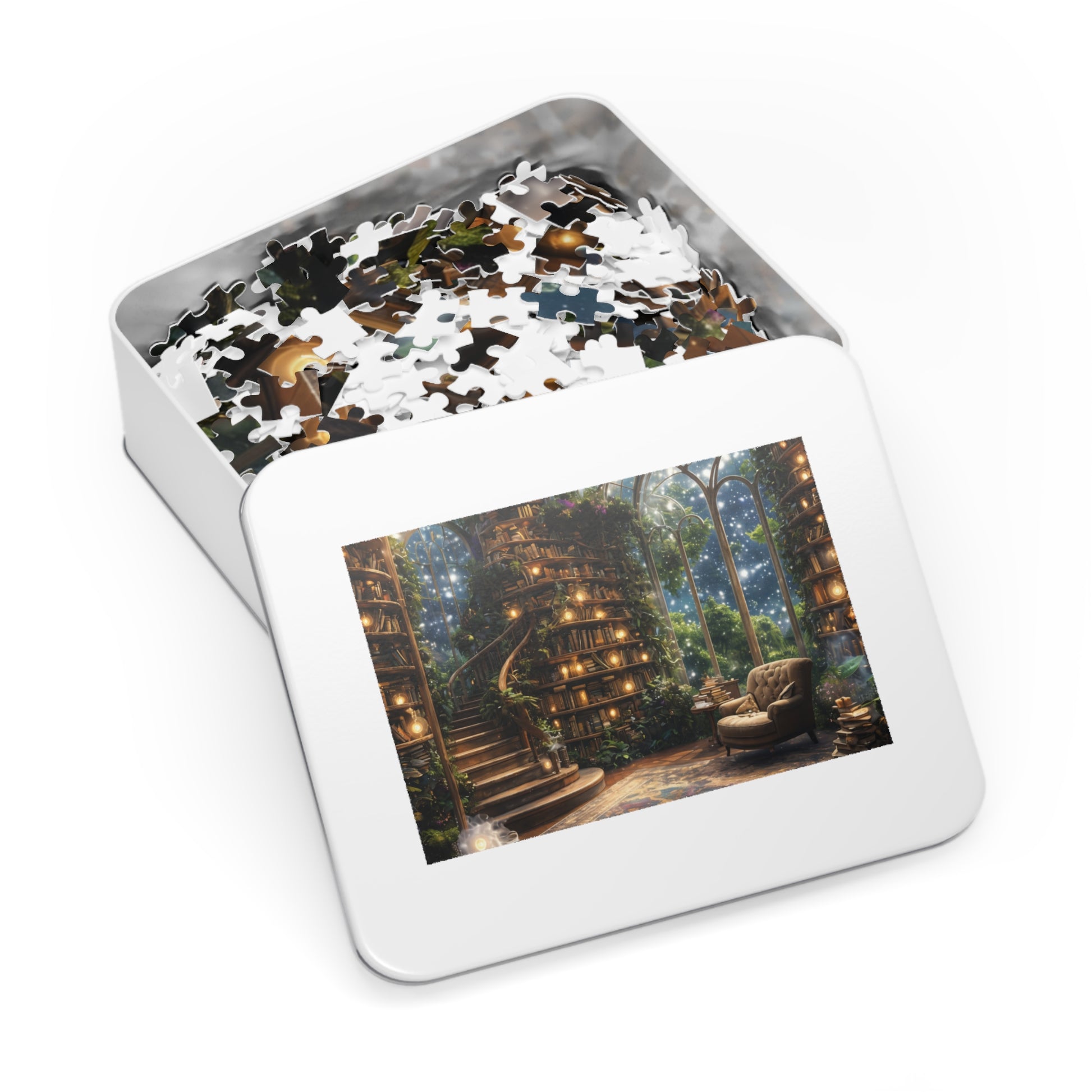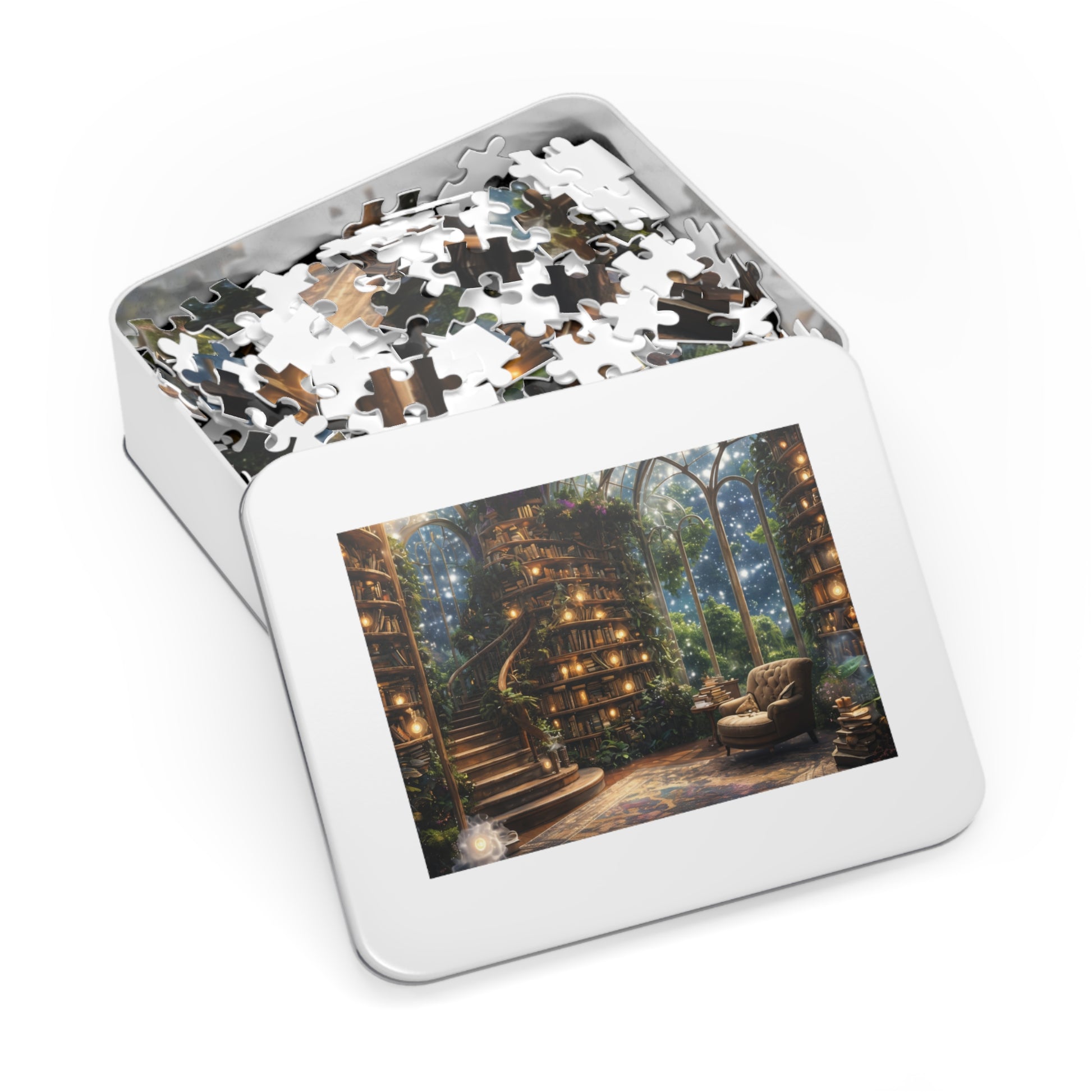 This high-quality puzzle comes in a sturdy white metal tin featuring the finished artwork on the lid, keeping pieces safe and neatly stored between sessions. A matching full-image box insert helps guide assembly, making it perfect for puzzlers of all skill levels. Choose from multiple piece counts—from a calming 30-piece vignette to a meditative 2000-piece challenge—to suit your mood and schedule.