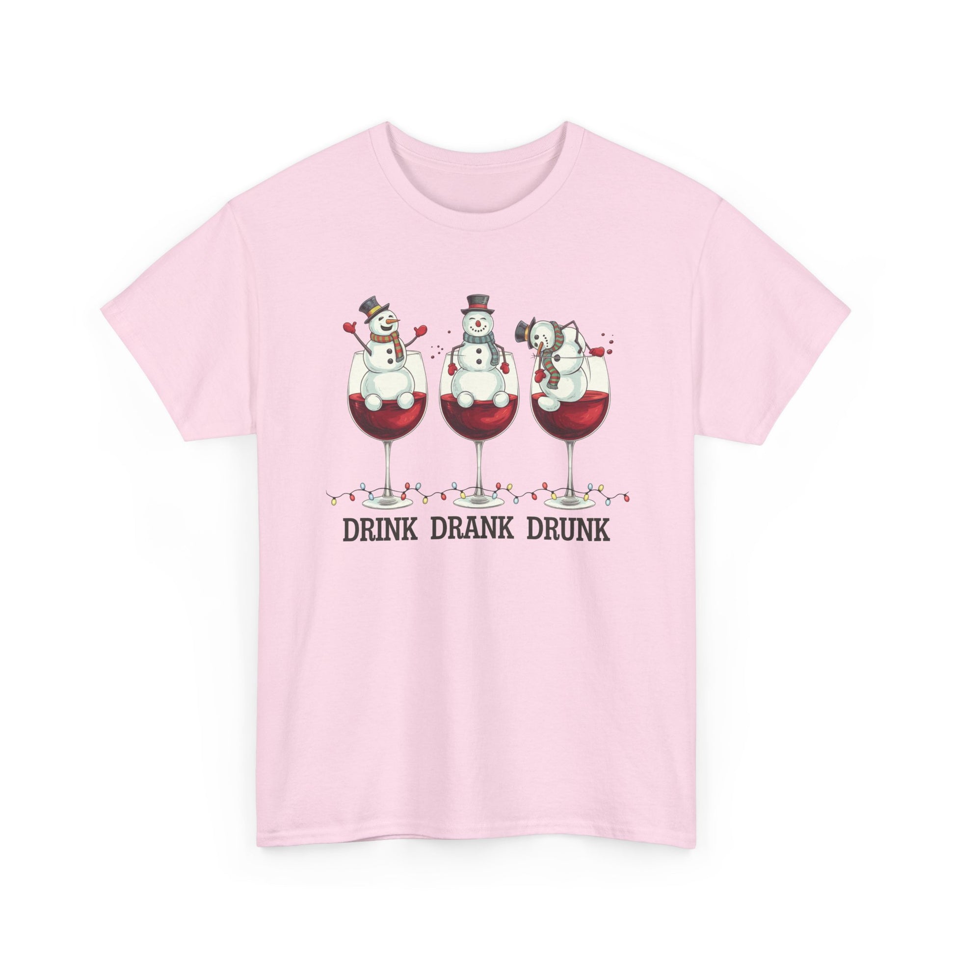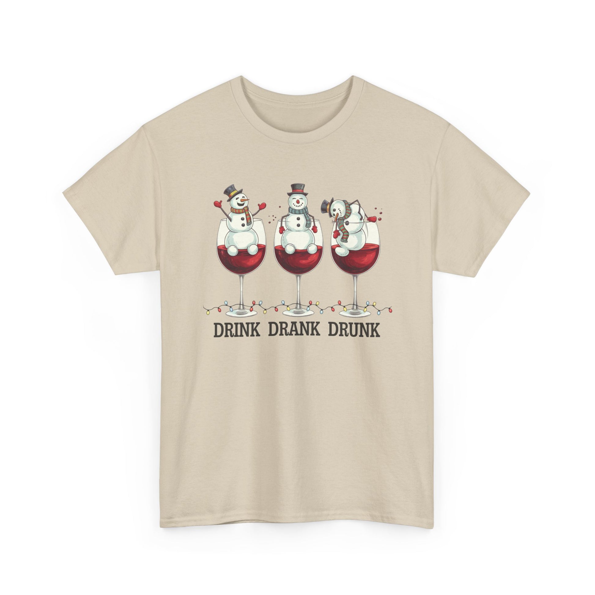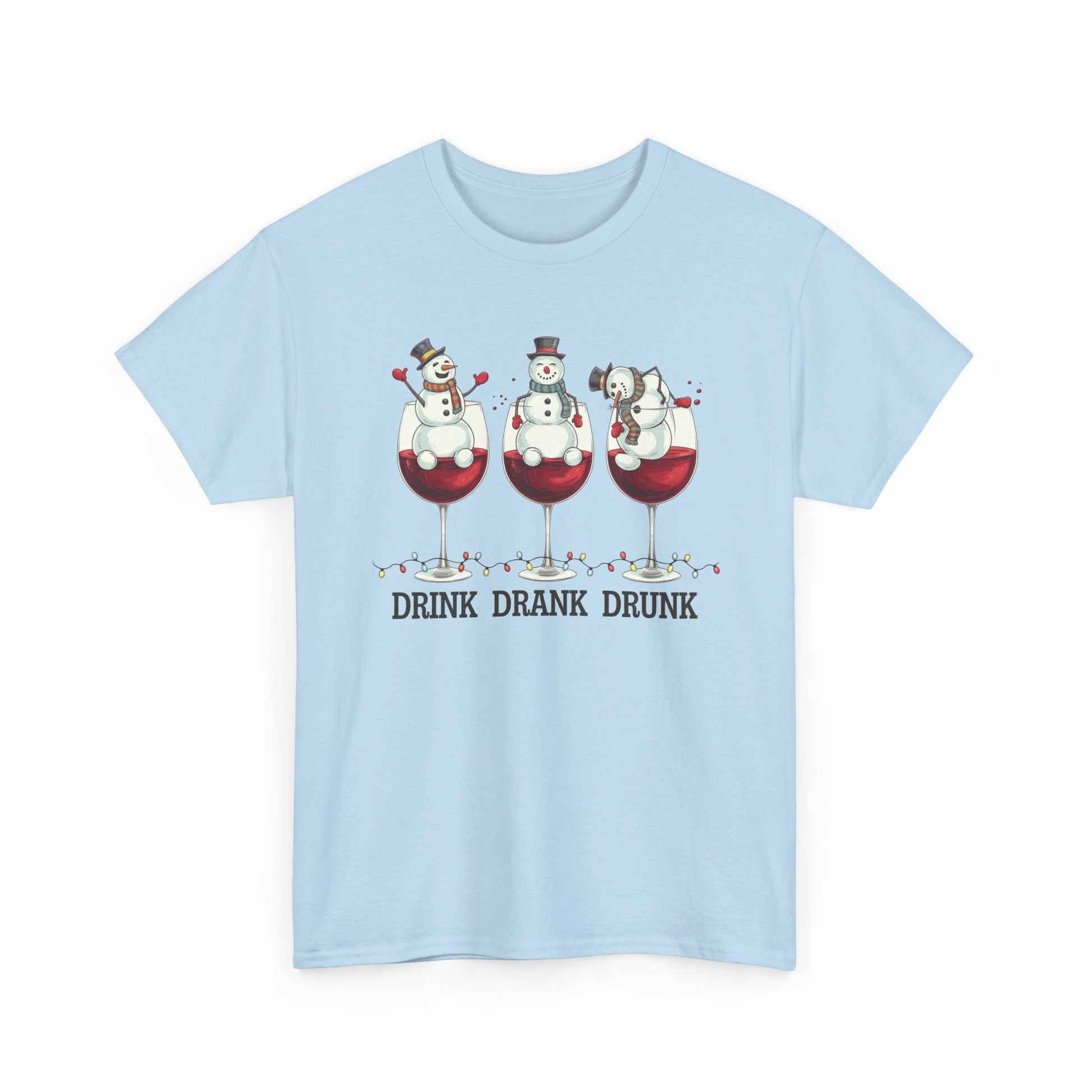 Drink Drank Drunk Christmas Shirt | Funny Holiday Wine Shirt | Snowman Christmas Tee | Drinking Humor Gift for Friends