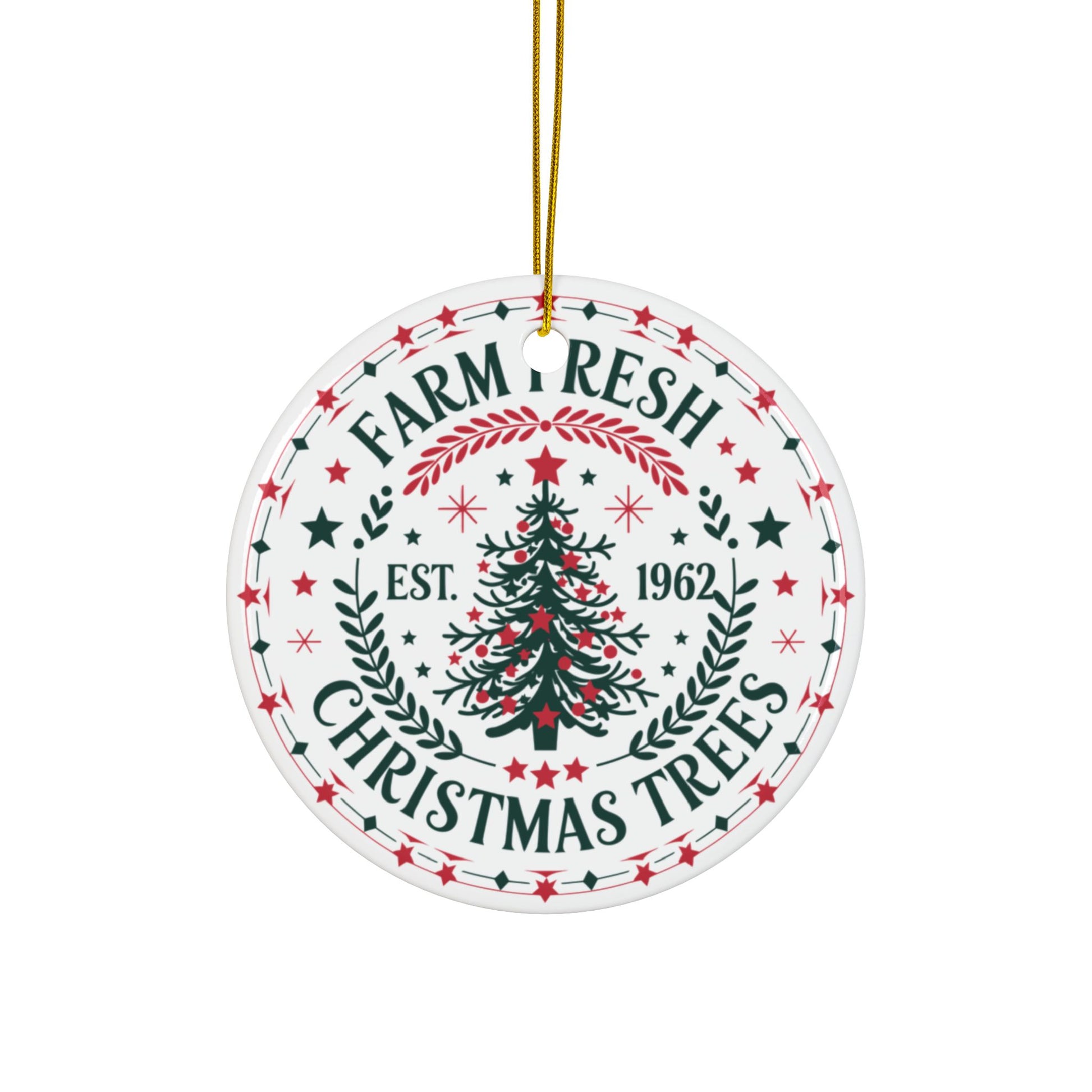 Farm Fresh Christmas Tree Ornament | Personalized Family Name Ornament 2025 | Rustic Holiday Decor | Custom Ceramic Christmas Keepsake Gift