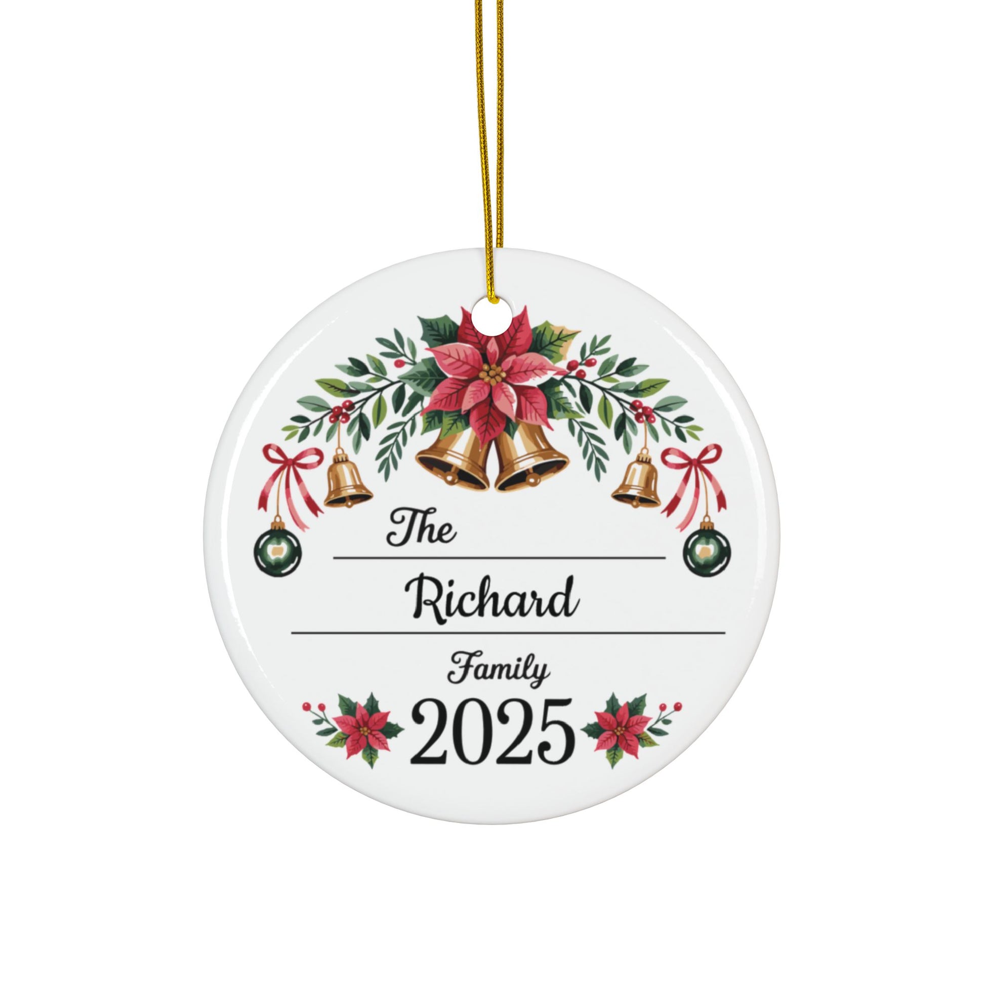Celebrate Christmas in style with this custom ornament featuring your family name and year. A timeless keepsake that captures holiday warmth and family memories.