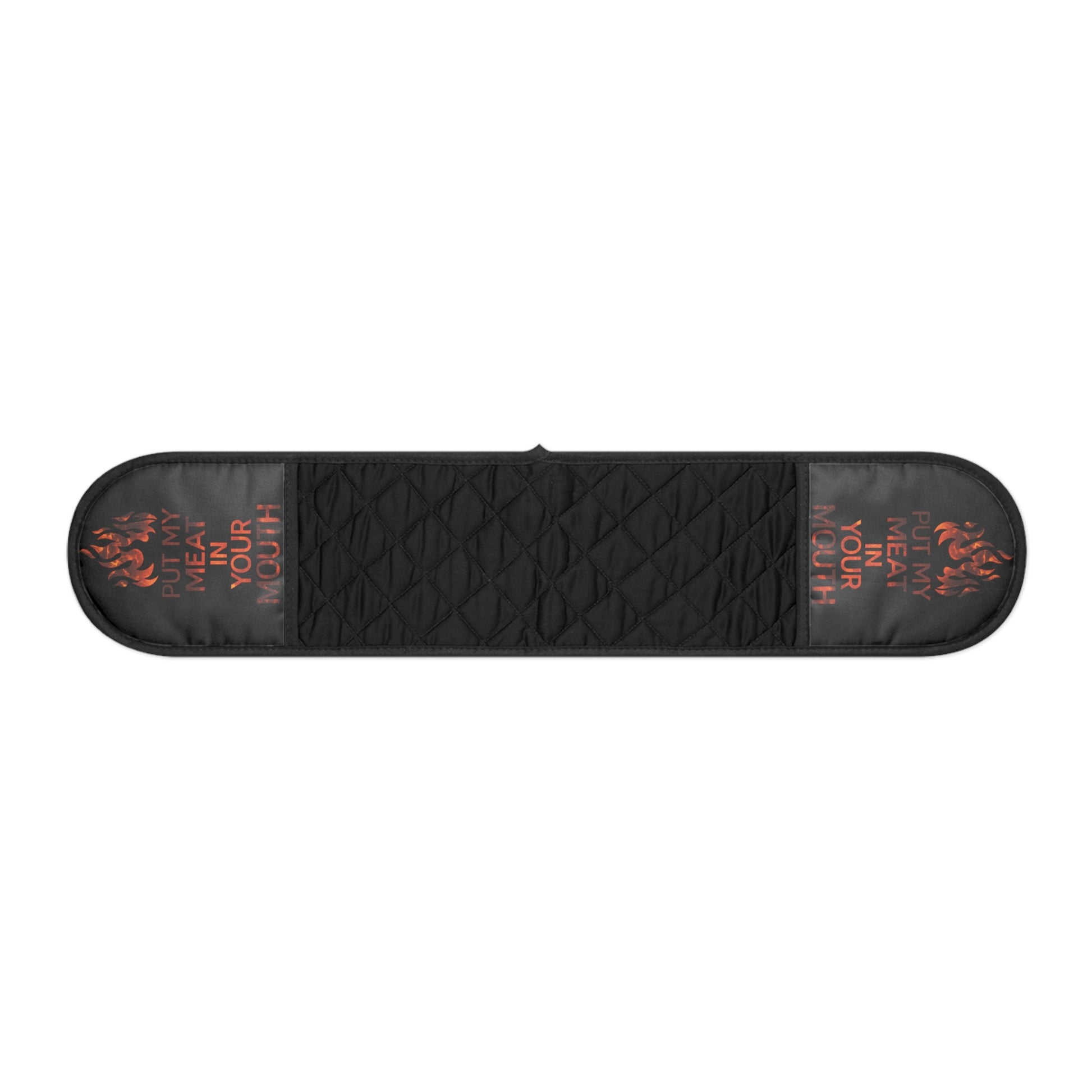Flaming Text Oven Mitts, ''Heat Your Soul'' Double Pot Holder, Black Quilted Heat Resistant Kitchen Accessory Gift