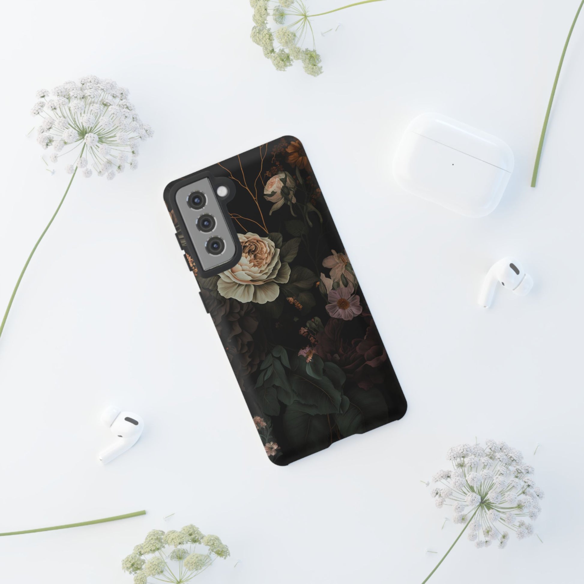 Stylish and protective floral phone case for iPhone and Samsung, perfect for nature lovers. This tough case offers excellent resistance to outdoor weathering and impact, making it a great gift for her. Relevant for birthdays, Mother's Day, and special occasions.
