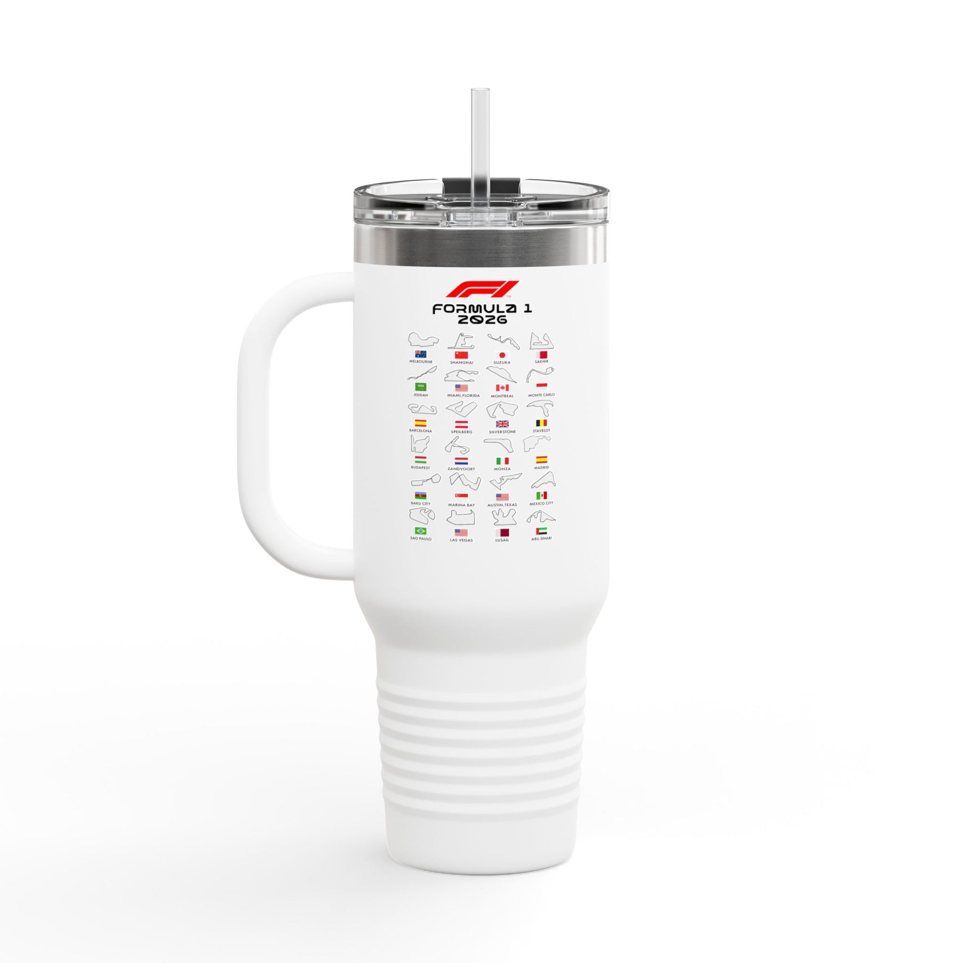 Formula 1 2026 Drivers Chart 40oz Travel Mug, F1 Season Insulated Tumbler with Handle & Straw, Motorsport Fan Gift