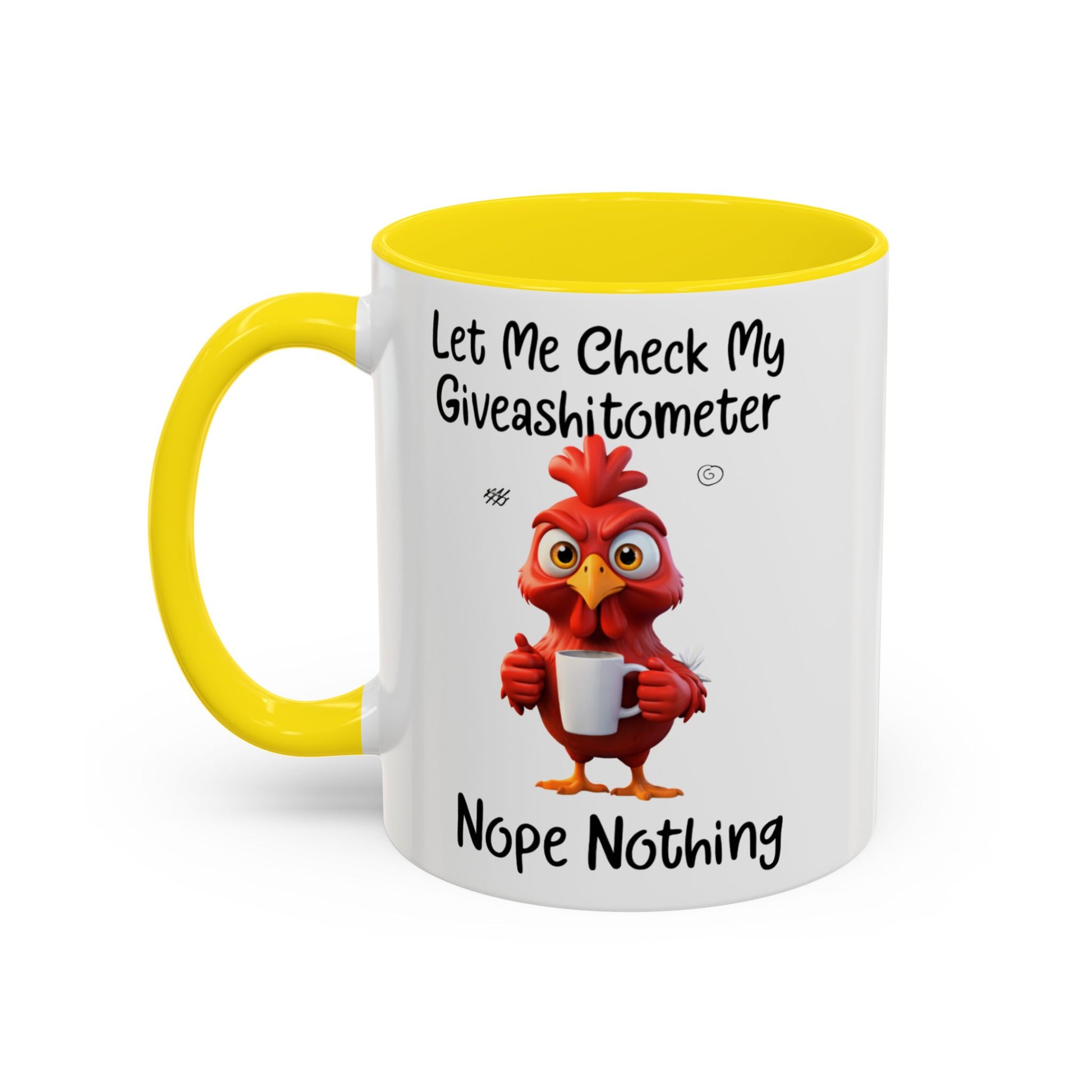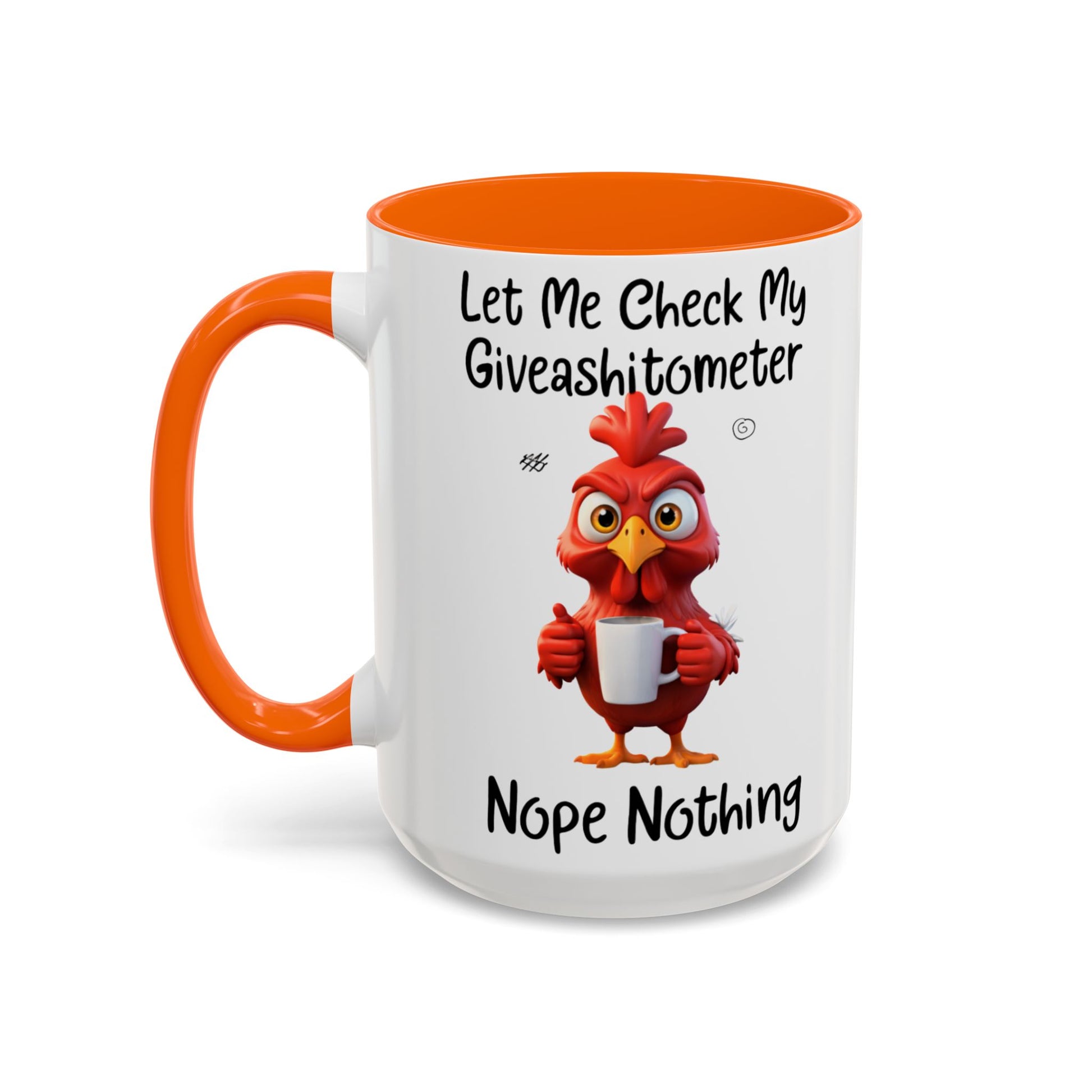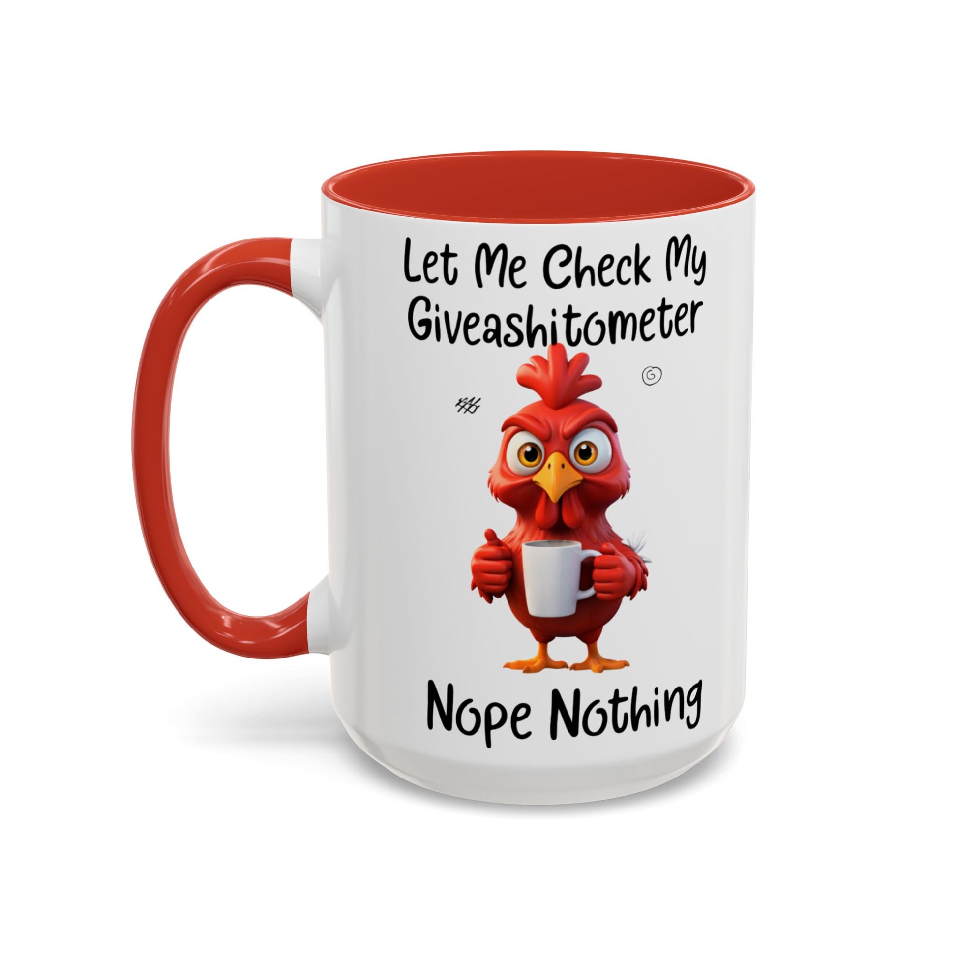 Some days call for coffee — and a very honest mug. This “Let Me Check My Giveashitometer… Nope, Nothing” accent coffee mug delivers dry humor with a bold rooster illustration that says exactly what you’re thinking before the caffeine even kicks in.
