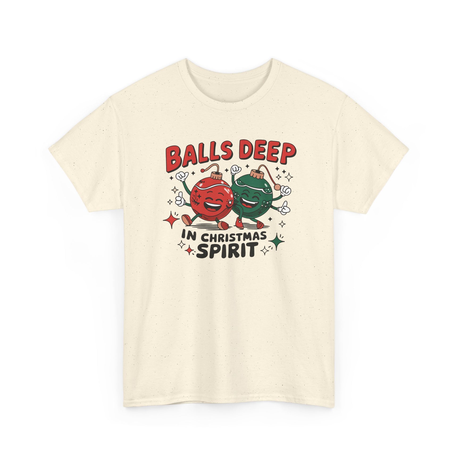 Funny Holiday T-Shirt, Balls Deep in Christmas Spirit Tee, Unisex Christmas Shirt, Gift for Him/Her, Ugly Sweater Alternative