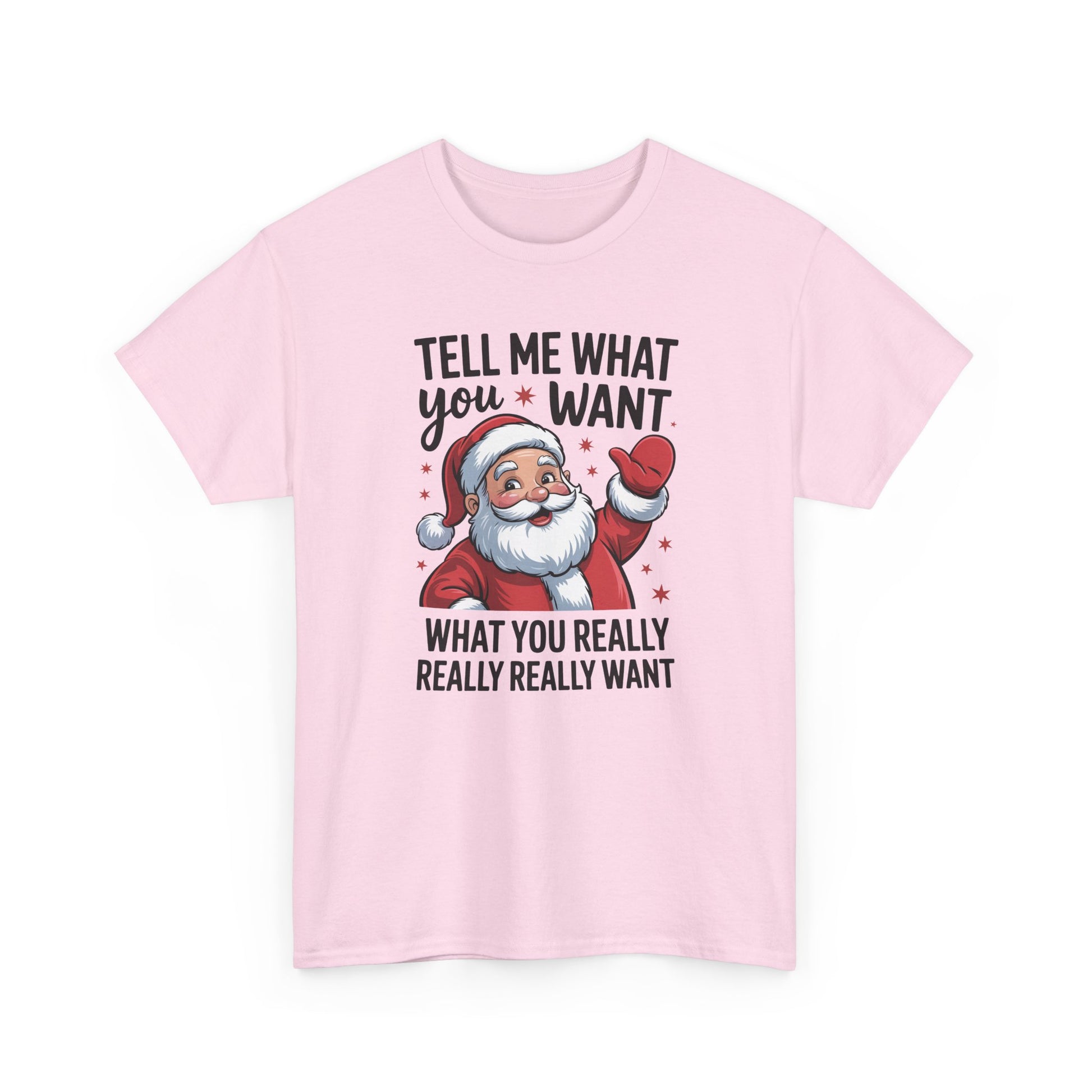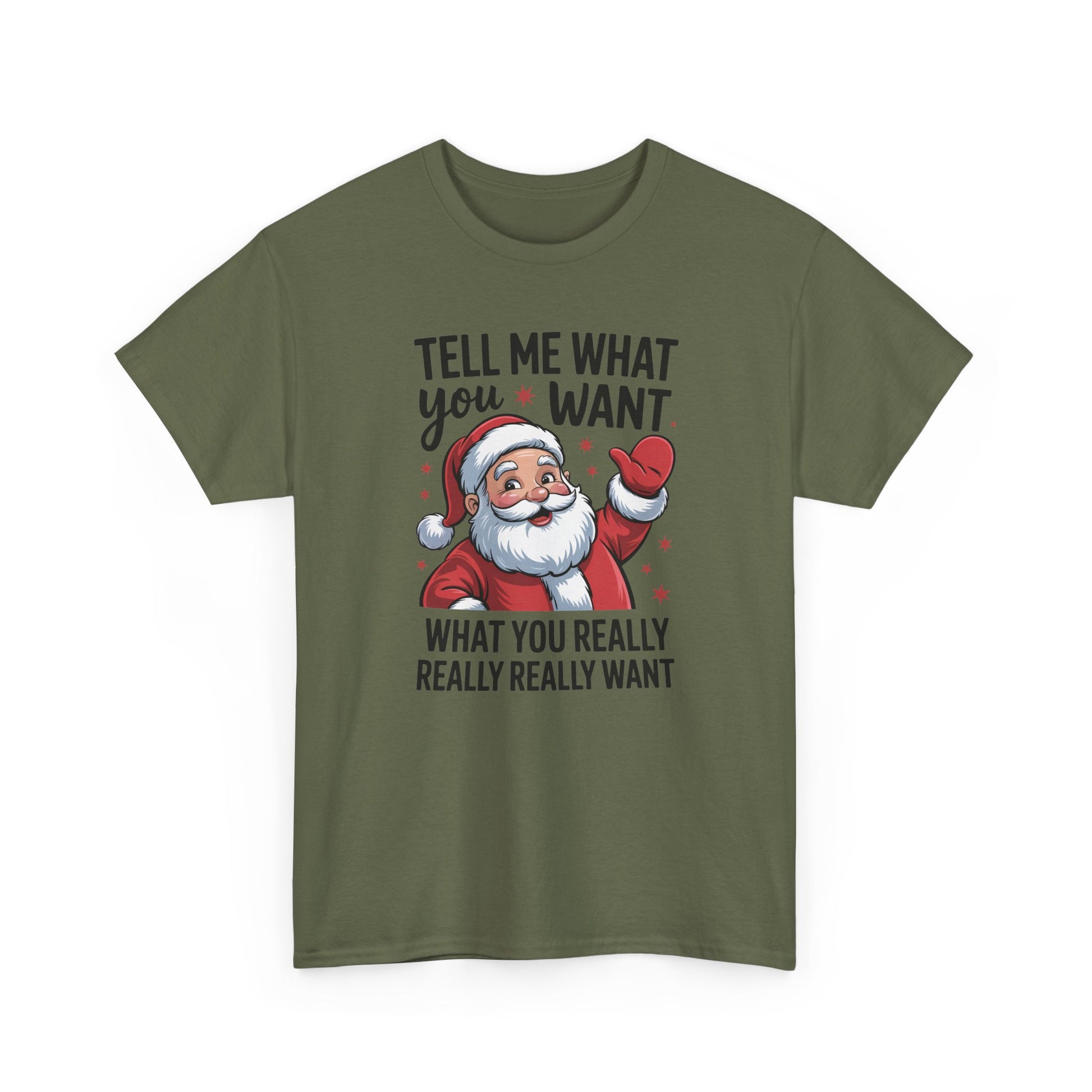 Funny Santa Christmas T-Shirt Tell Me What You Want Graphic Tee | Holiday Humor Shirt for Men & Women | Festive Gift Idea