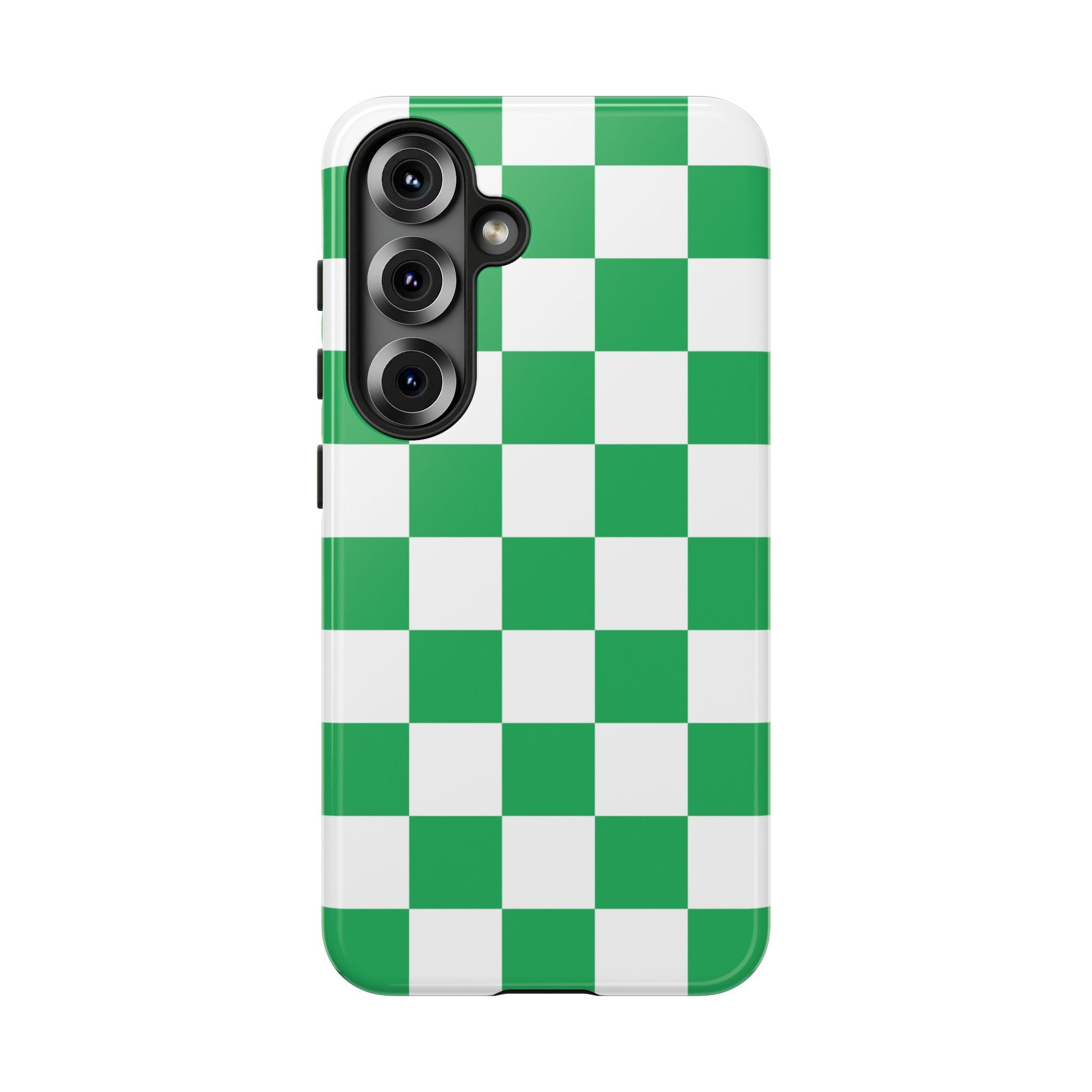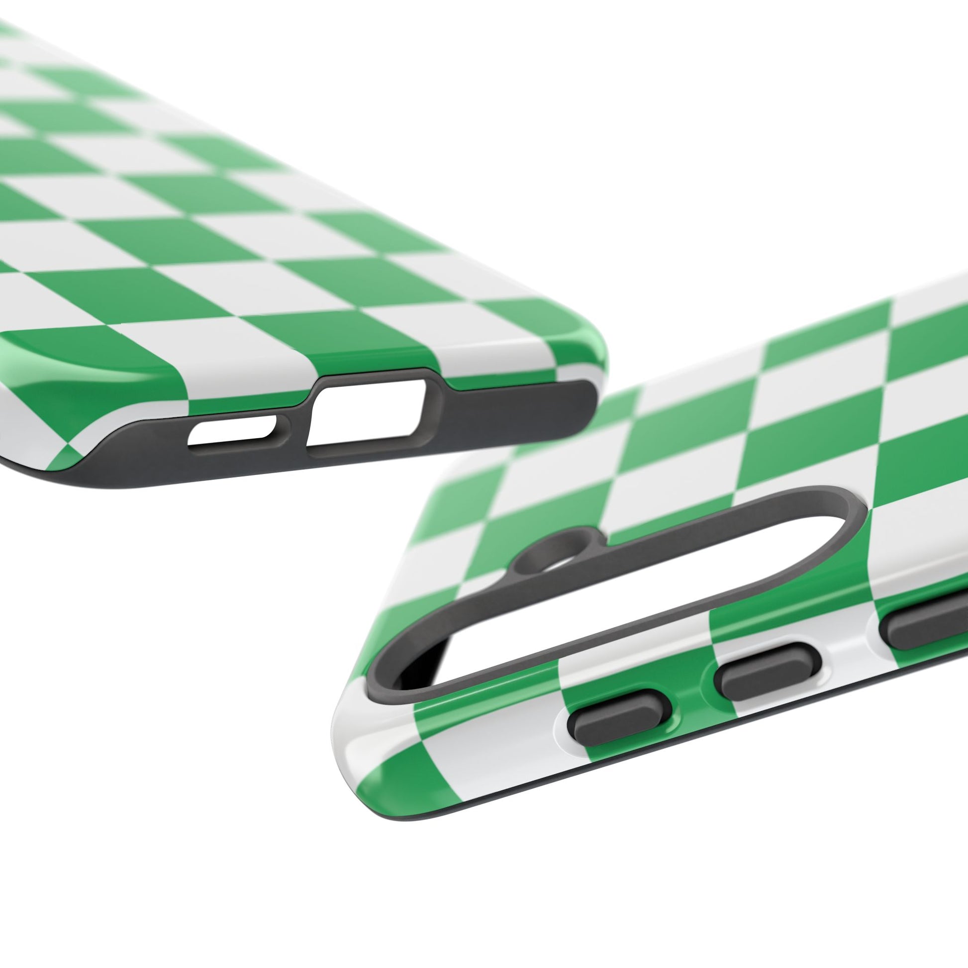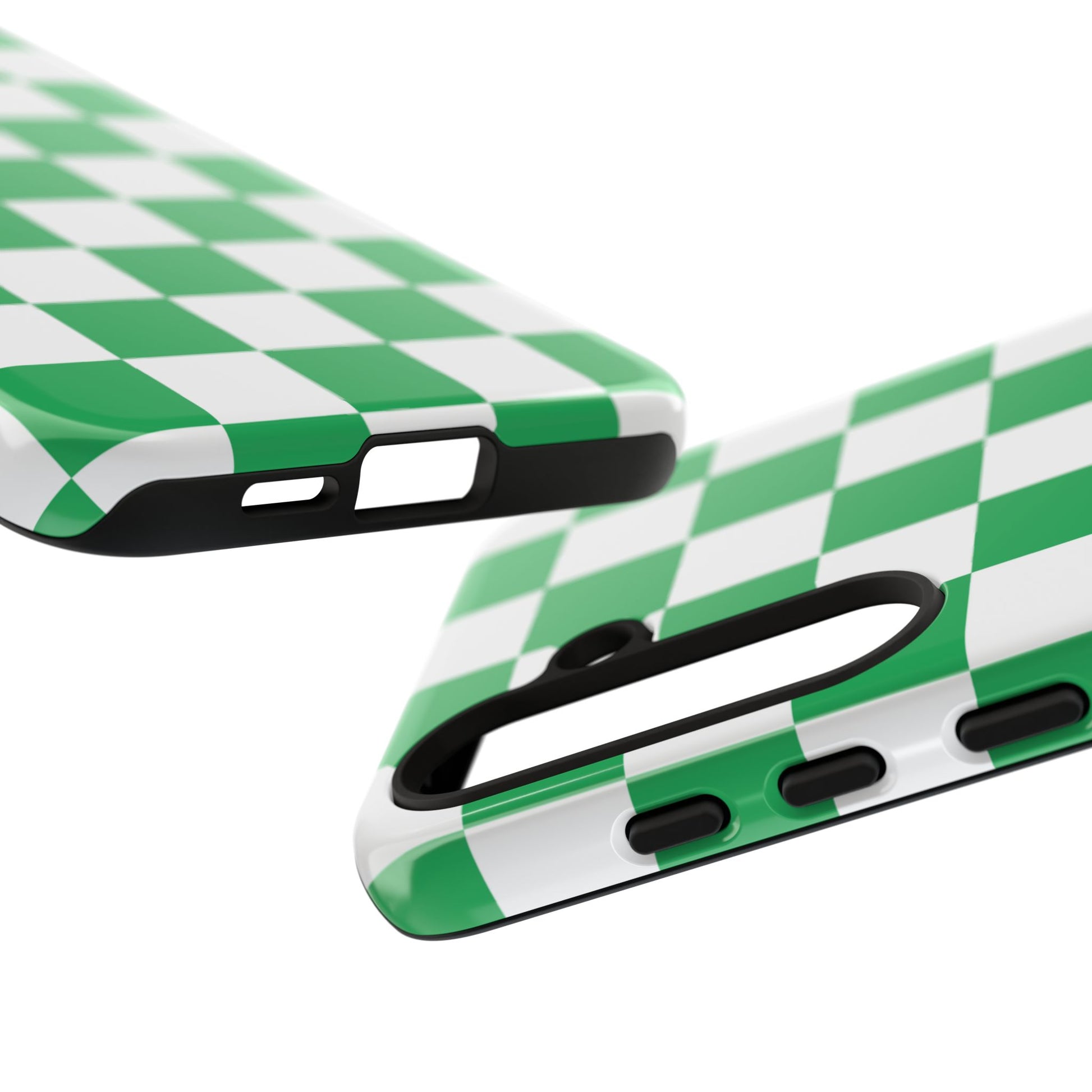 Green Checkered Phone Case, Phone Cases Samsung Galaxy S25, S25 Plus, S24, S24 Plus, S24 Ultra, S23, S22, S22 Plus, S21 Ultra, S21 FE, S20+