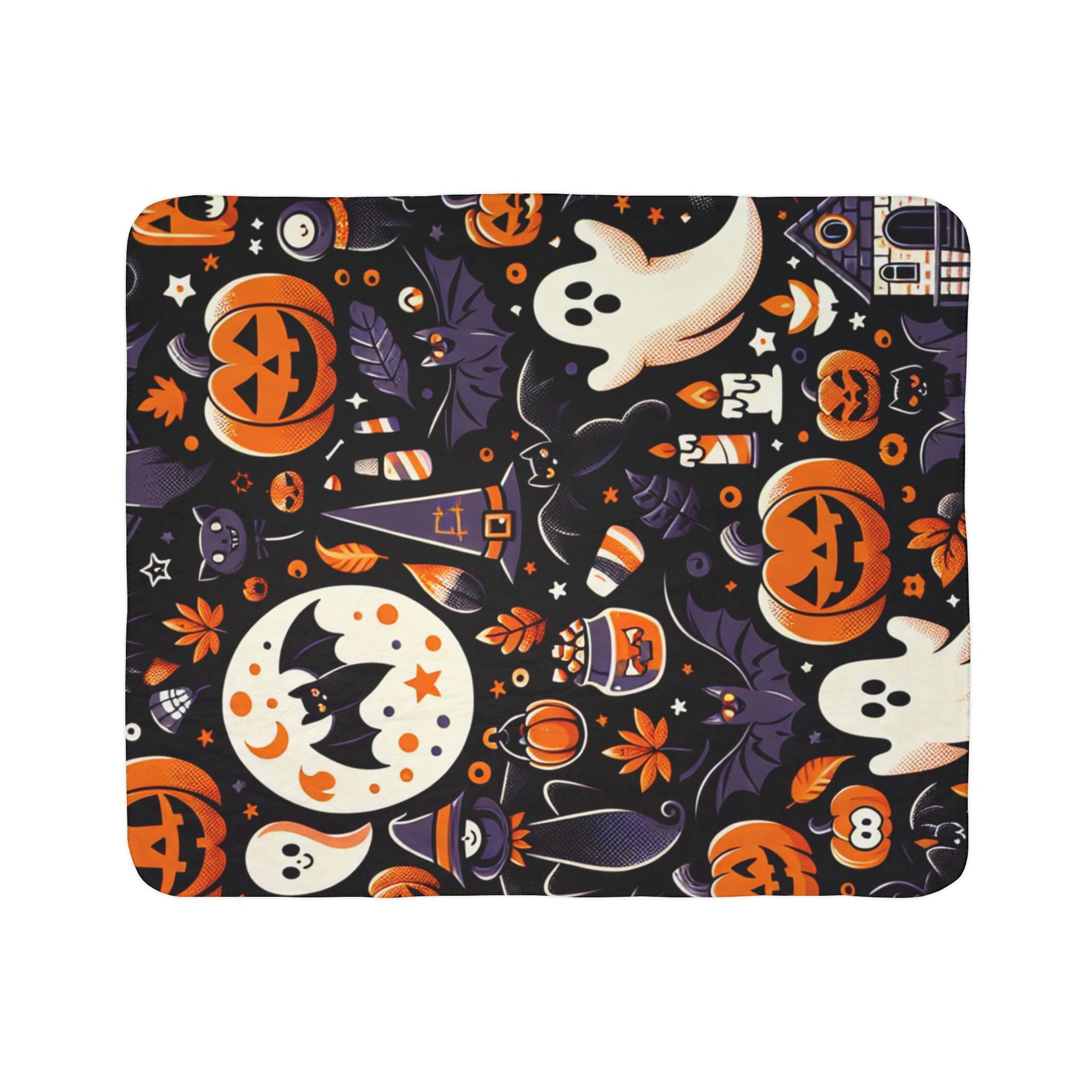 Halloween Fleece Sherpa Blanket, Cozy Fall Decor, Spooky Season Gift, Witchy Throw, Pumpkin Blanket, Ghostly Home Accessory