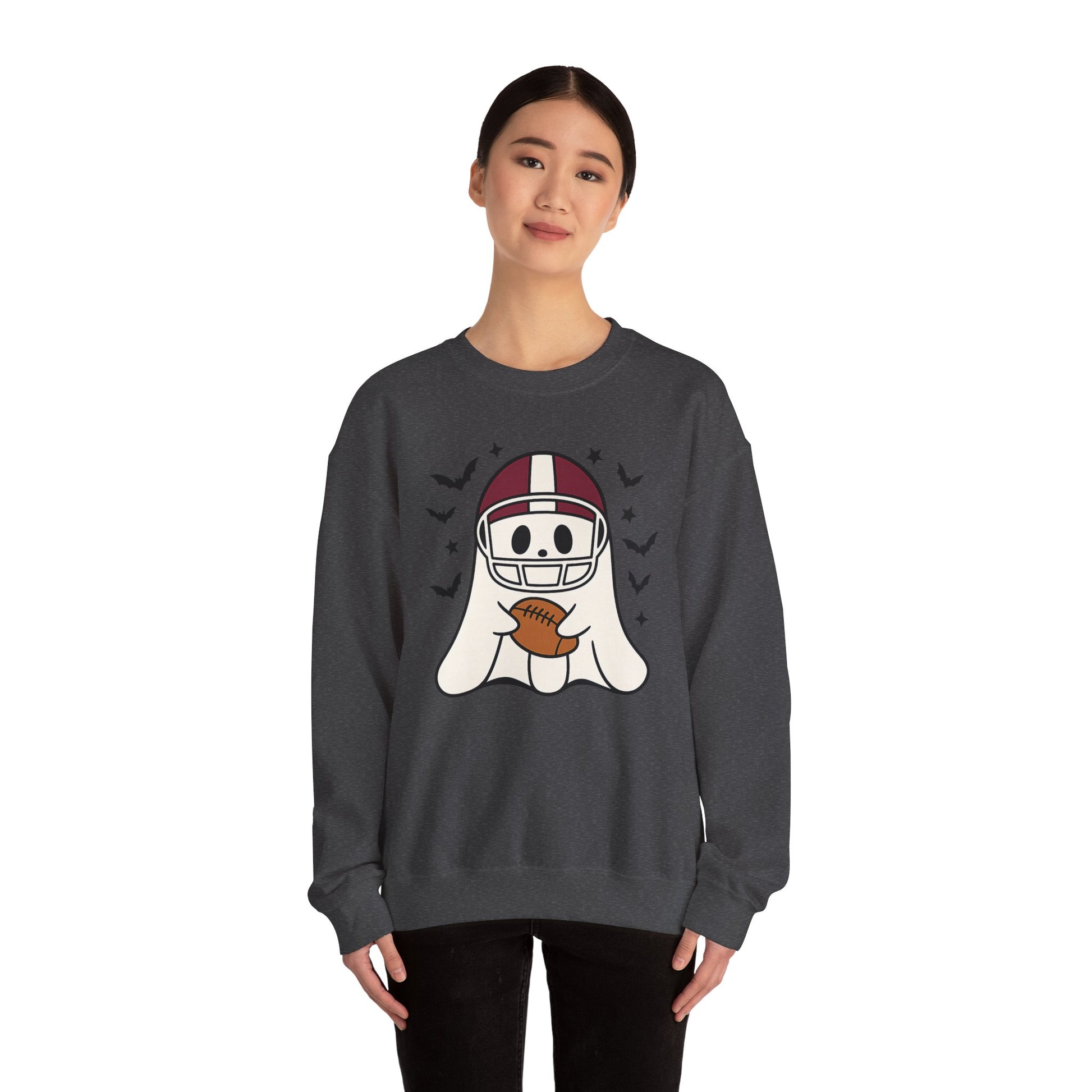 Halloween Ghost Football Sweatshirt, Cozy Crewneck, Unisex Sweatshirt, Fall Apparel, Spooky Season Fashion, Ghost Design