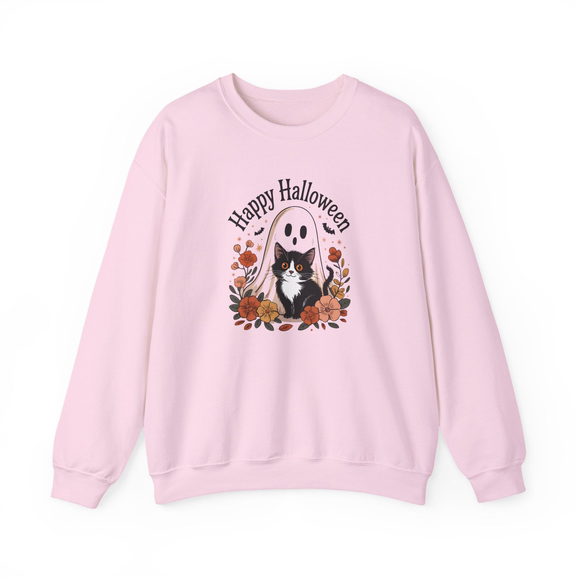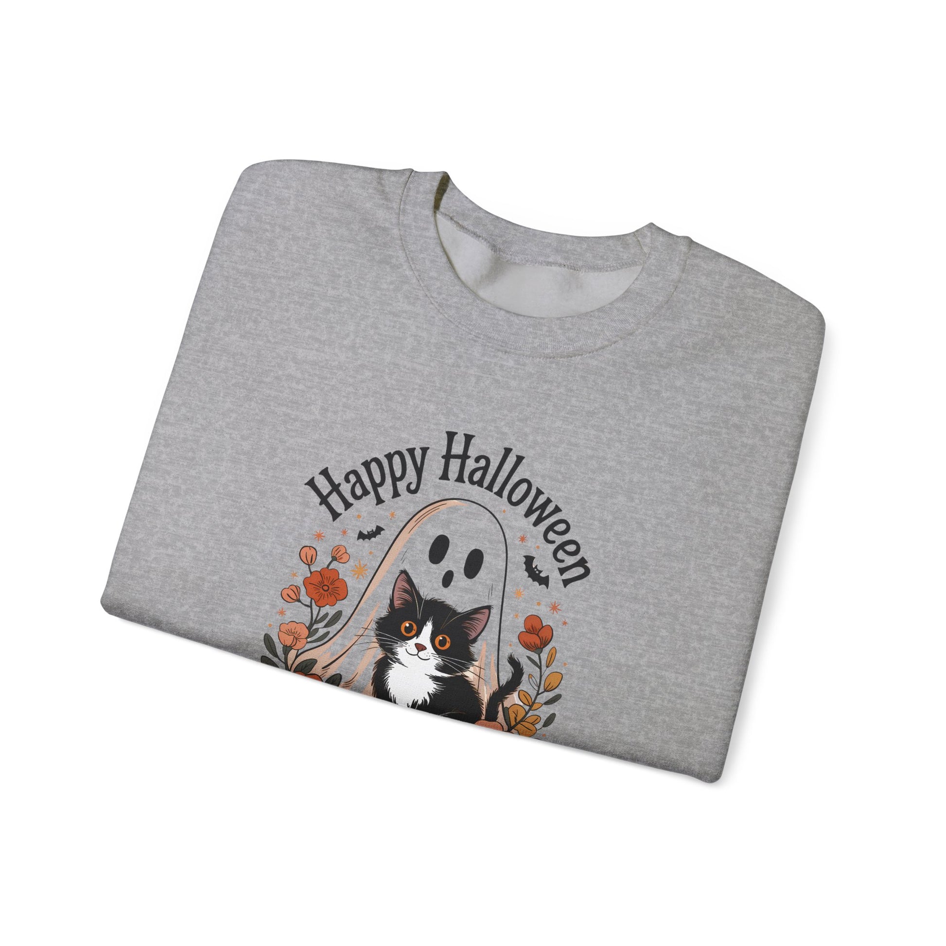 Happy Halloween Cat Crewneck Sweatshirt, Cozy Fall Sweatshirt, Halloween Gift, Fall Fashion, Gift for Her, Spooky Season Apparel