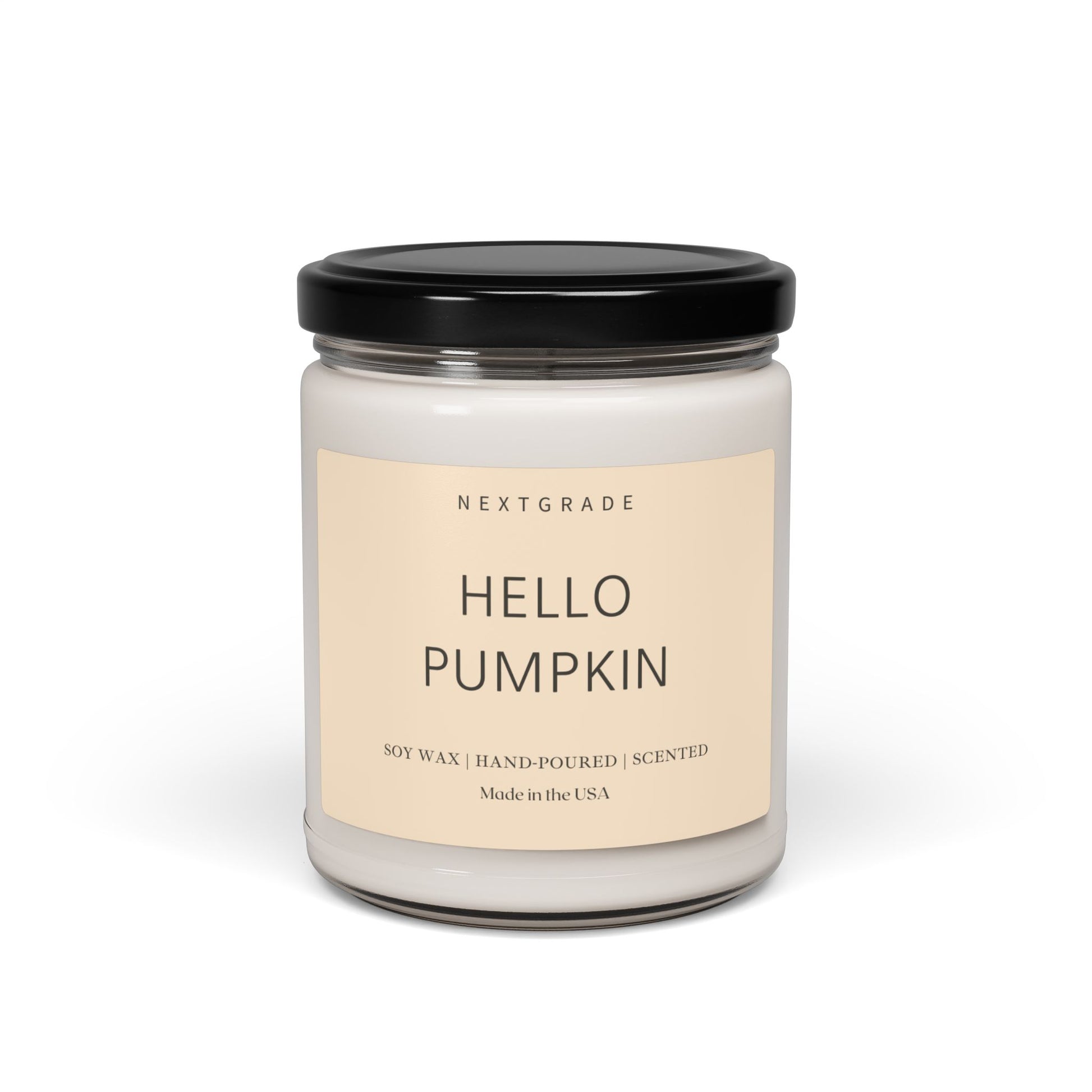 Hello Pumpkin Candle - Fall Soy Candles - Pumpkin Candles for Home with 50-60 Hours Burn Time - 9Oz Black Lid Amber Jar Candle