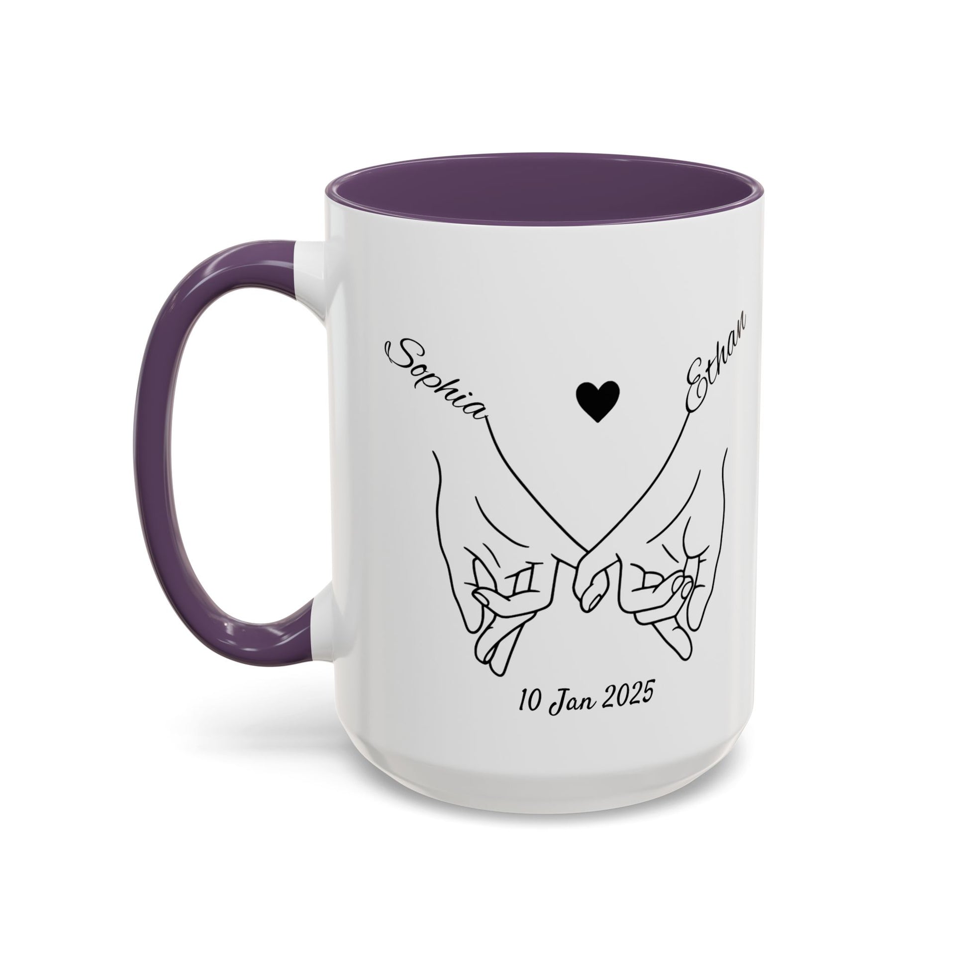 Holding Hands Couple Mug | Personalized Names & Date Coffee Cup | Custom Line Art Love Mug | Valentine Anniversary Gift for Couples