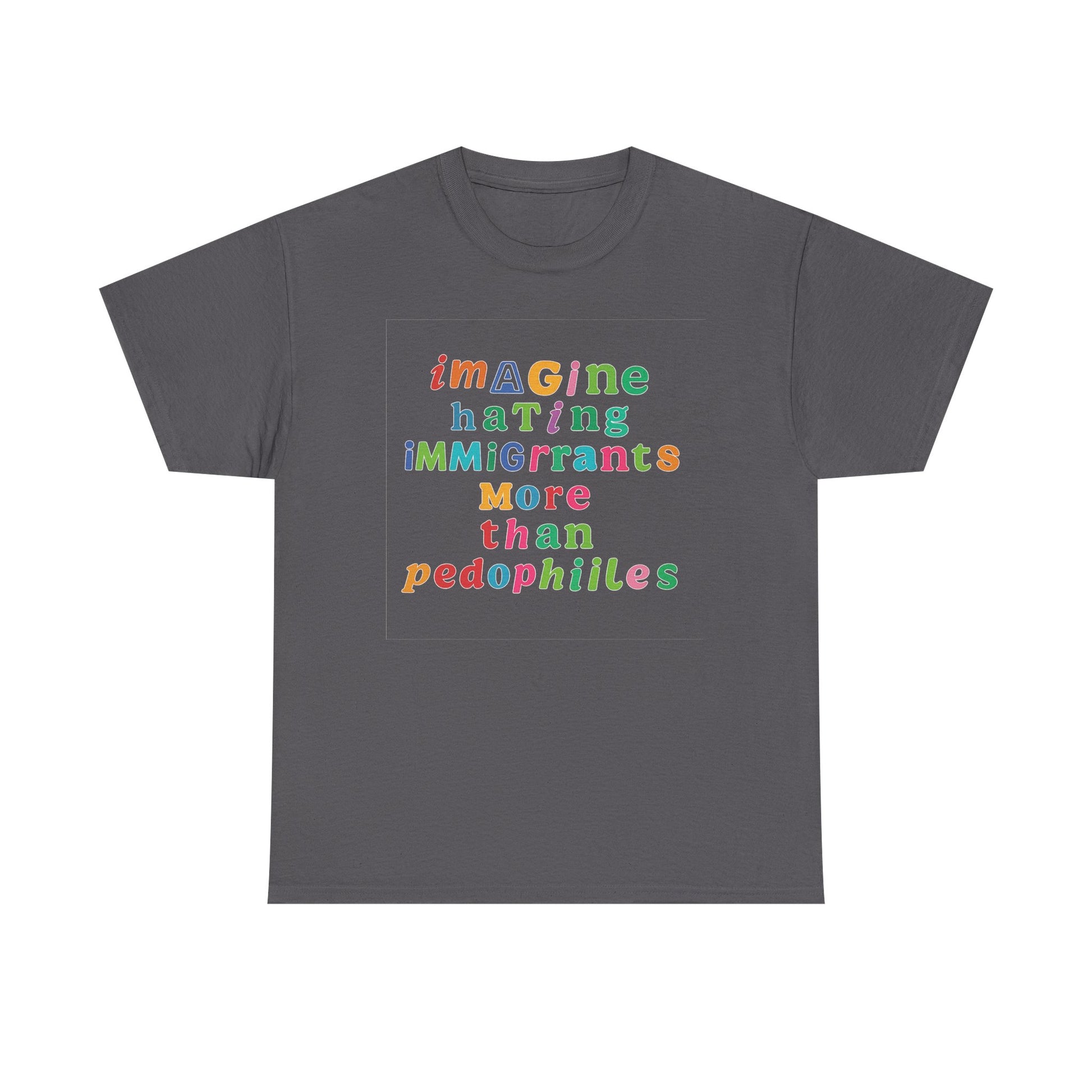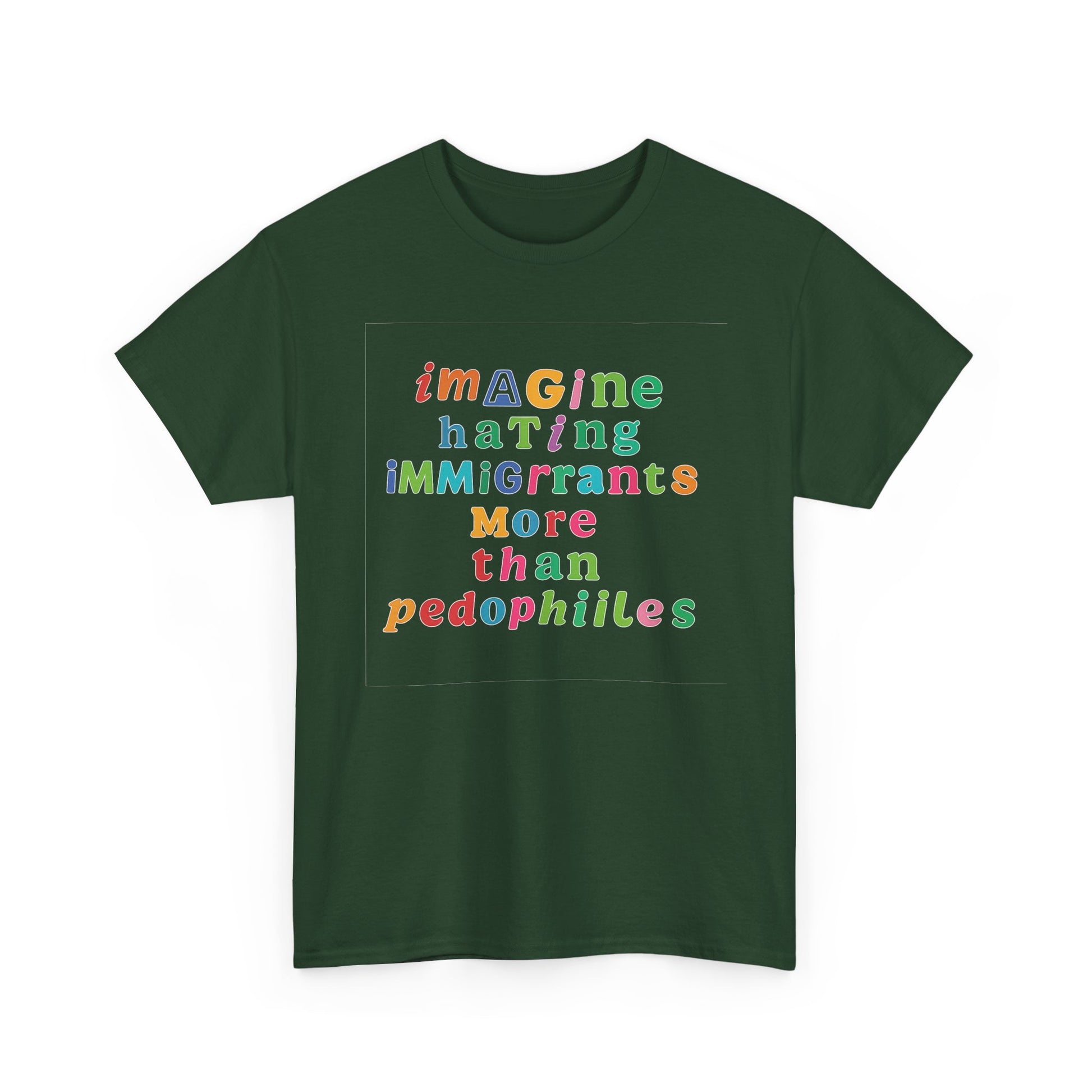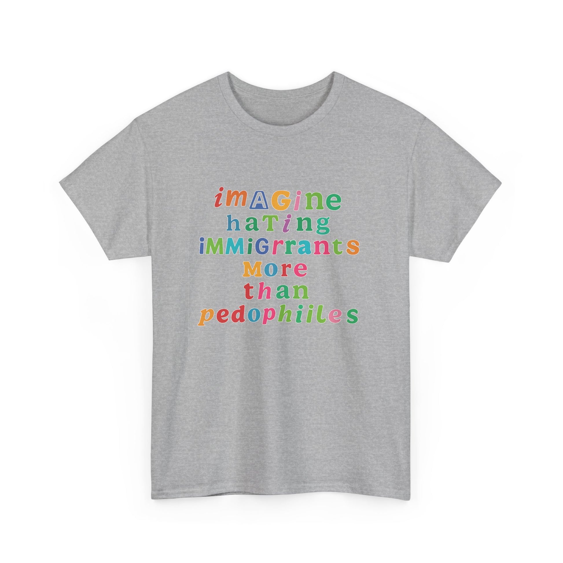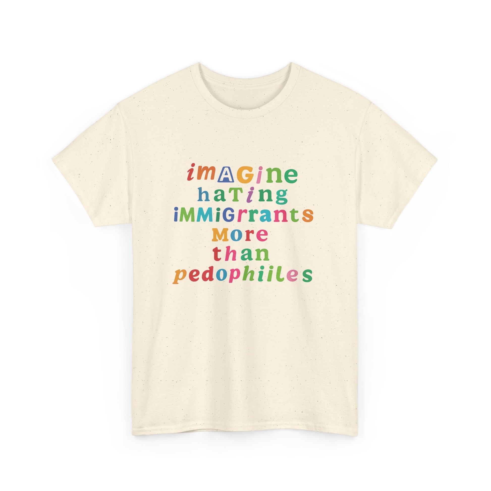 Imagine Hating Immigrants More Than Pedophiles Shirt, Bold Text Protest Tee, Equality Activist T-Shirt, Human Rights Awareness Gift