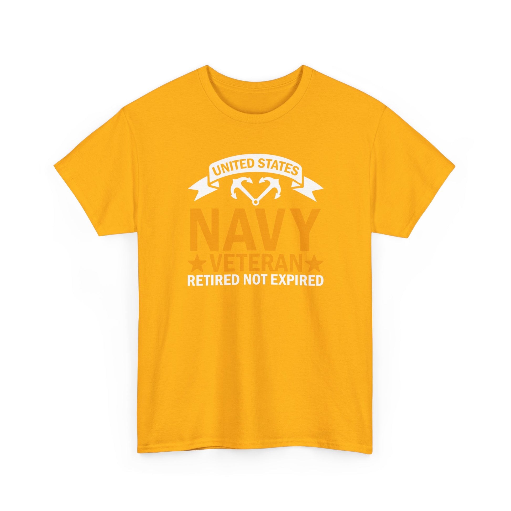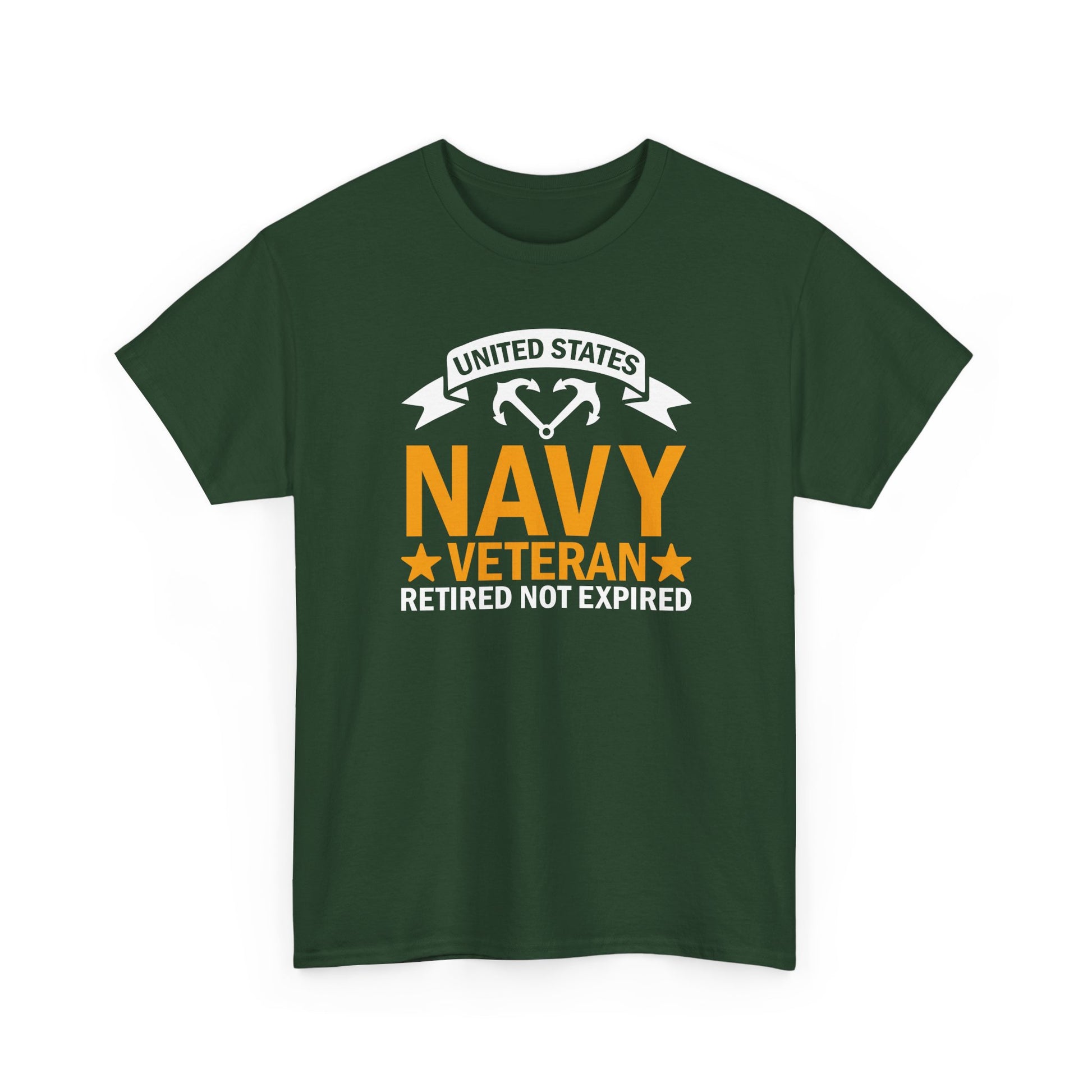 Navy Veteran Heavy Cotton T-Shirt, Gifts for Veterans, Memorial Day, Patriotic Apparel, Retired Not Expired, Gift for dad