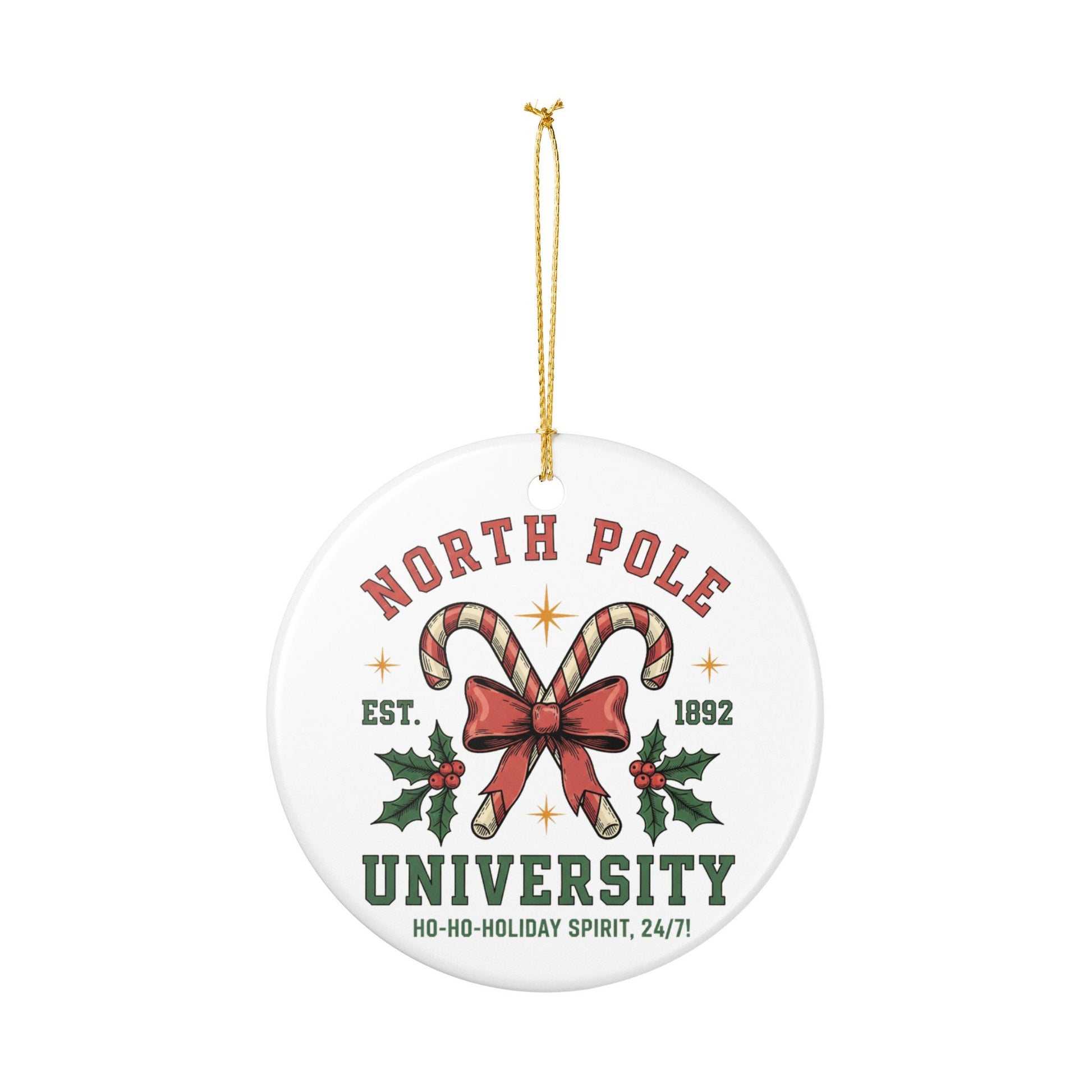 This design blends classic holiday charm with whimsical humor—making it stand out on any tree. The "North Pole University" theme is a clever nod to Christmas lovers and adds a dash of festive personality to your home decor.