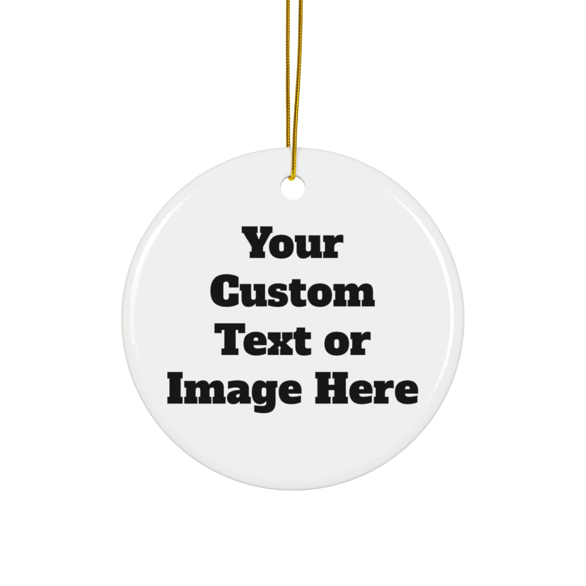 Personalized Christmas Ornaments made of 100% ceramic with a glossy finish. These custom double-sided holiday decorations are perfect for adding a festive touch to your tree or home decor. They make great seasonal gifts for friends and family.