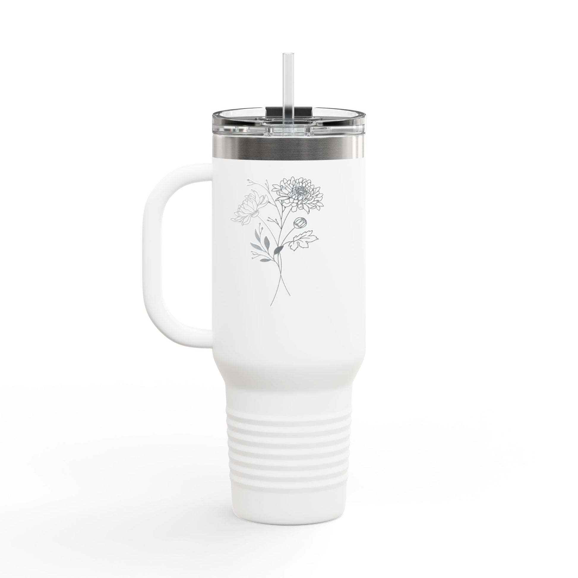 Personalized Floral Insulated Travel Mug, Coffee Tumbler, Eco-friendly Travel Mug, Holiday Gift, Tumbler for On-the-Go, Christmas Gifts