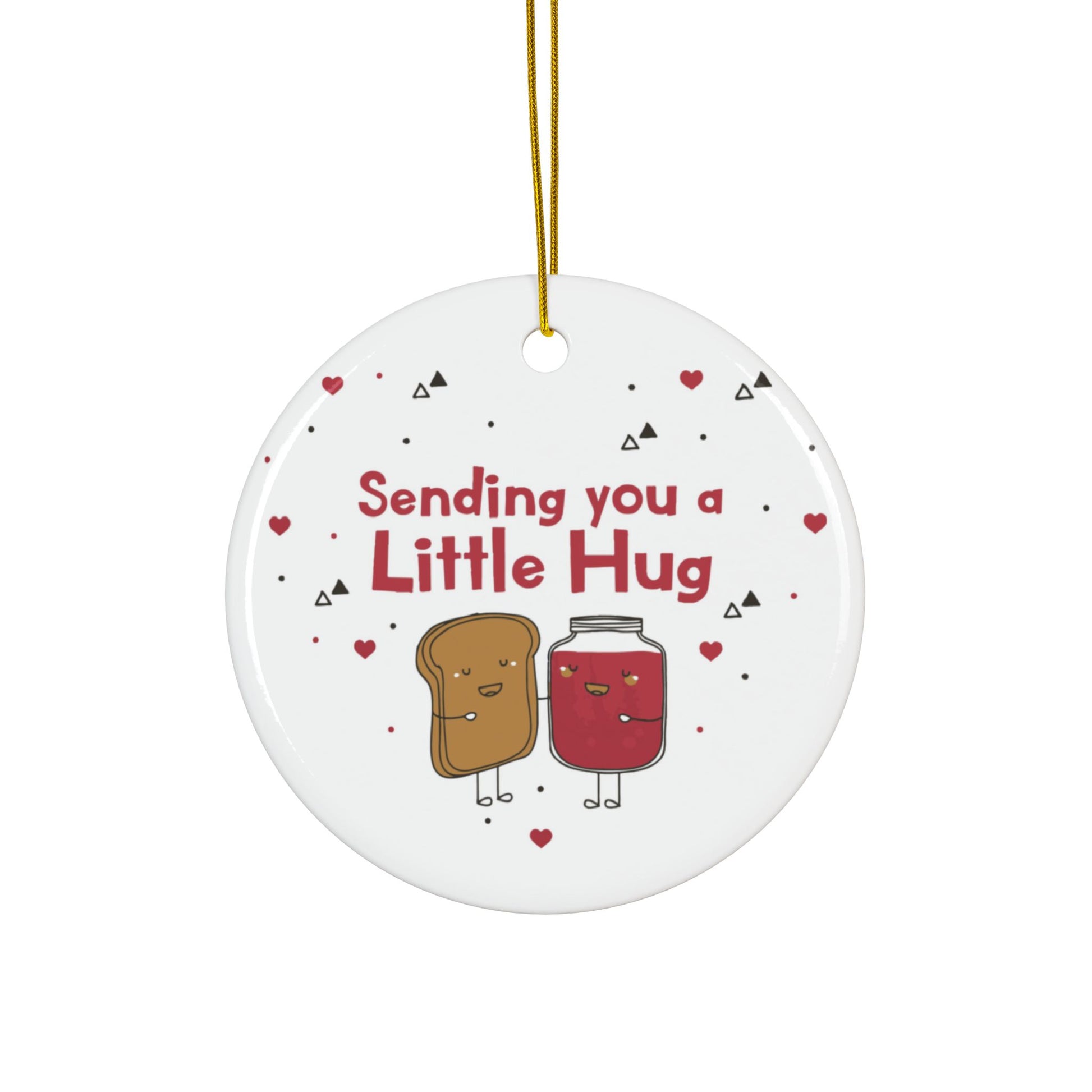 Brighten someone’s day with this “Sending You a Little Hug” Ceramic Ornament, a delightful reminder that love can be shared in the simplest ways. Crafted from high-quality ceramic, it features a charming peanut butter and jelly design with the heartwarming message “Sending You a Little Hug.”