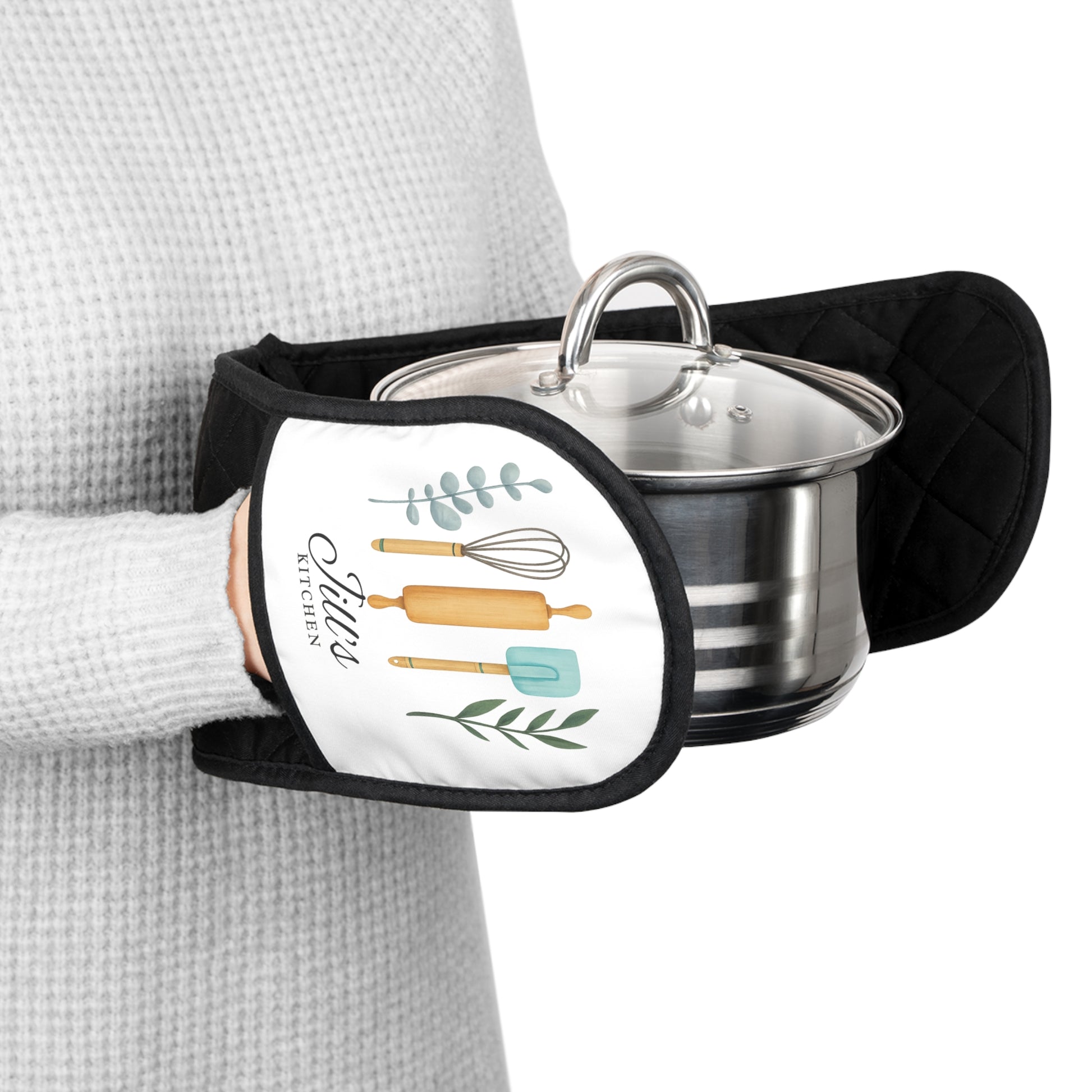 Personalized Oven Mitts or Pot Holder Set, Double Handle Kitchen Utensils Design, Custom Gift for Mom, Grandma, Housewarming