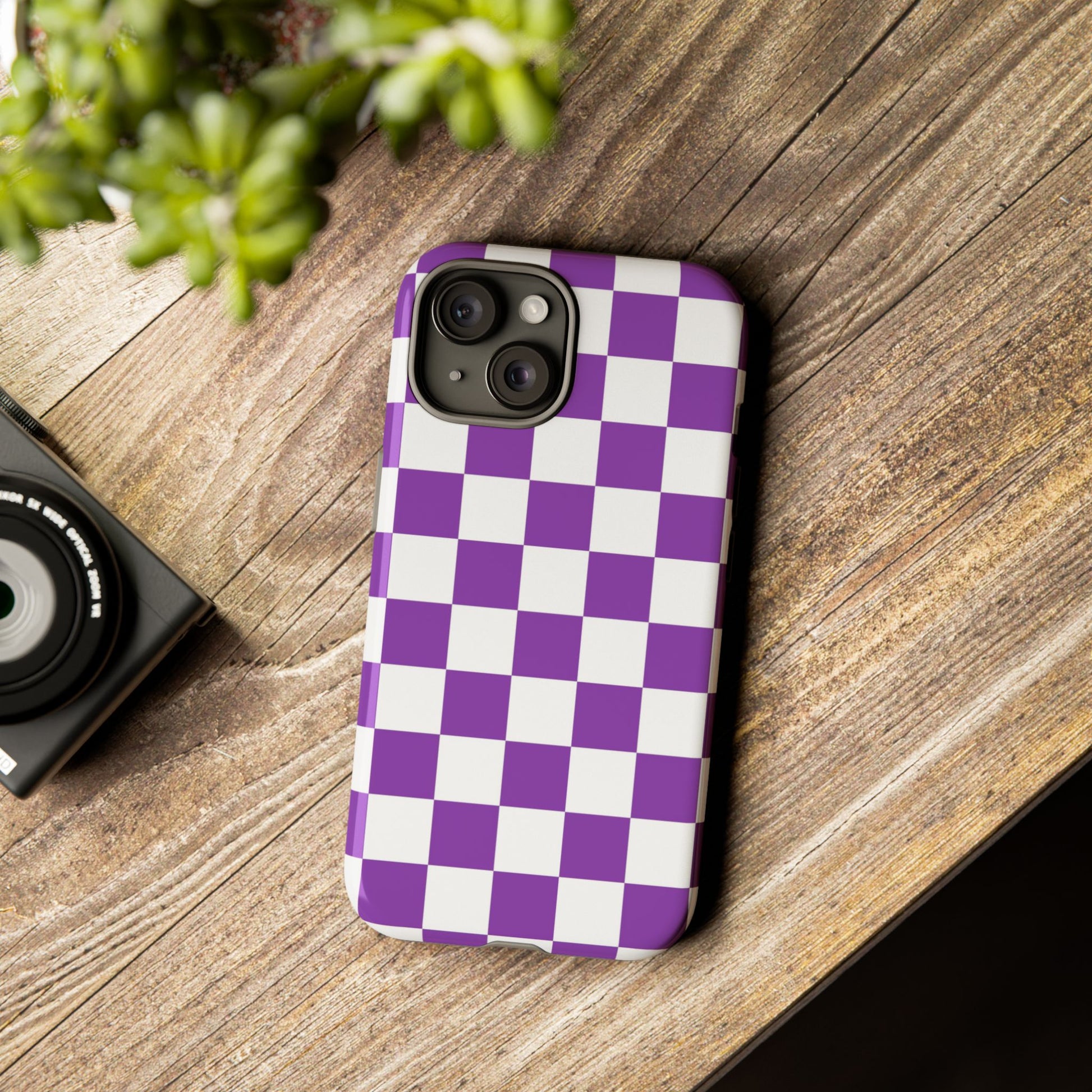 Purple Checkered Phone Case, iPhone 17 Pro, 17, 16, 15, 14, 13, 12, 11, X, XR, XS MAX, Trendy Gift for Friends, Accessory for Occasions