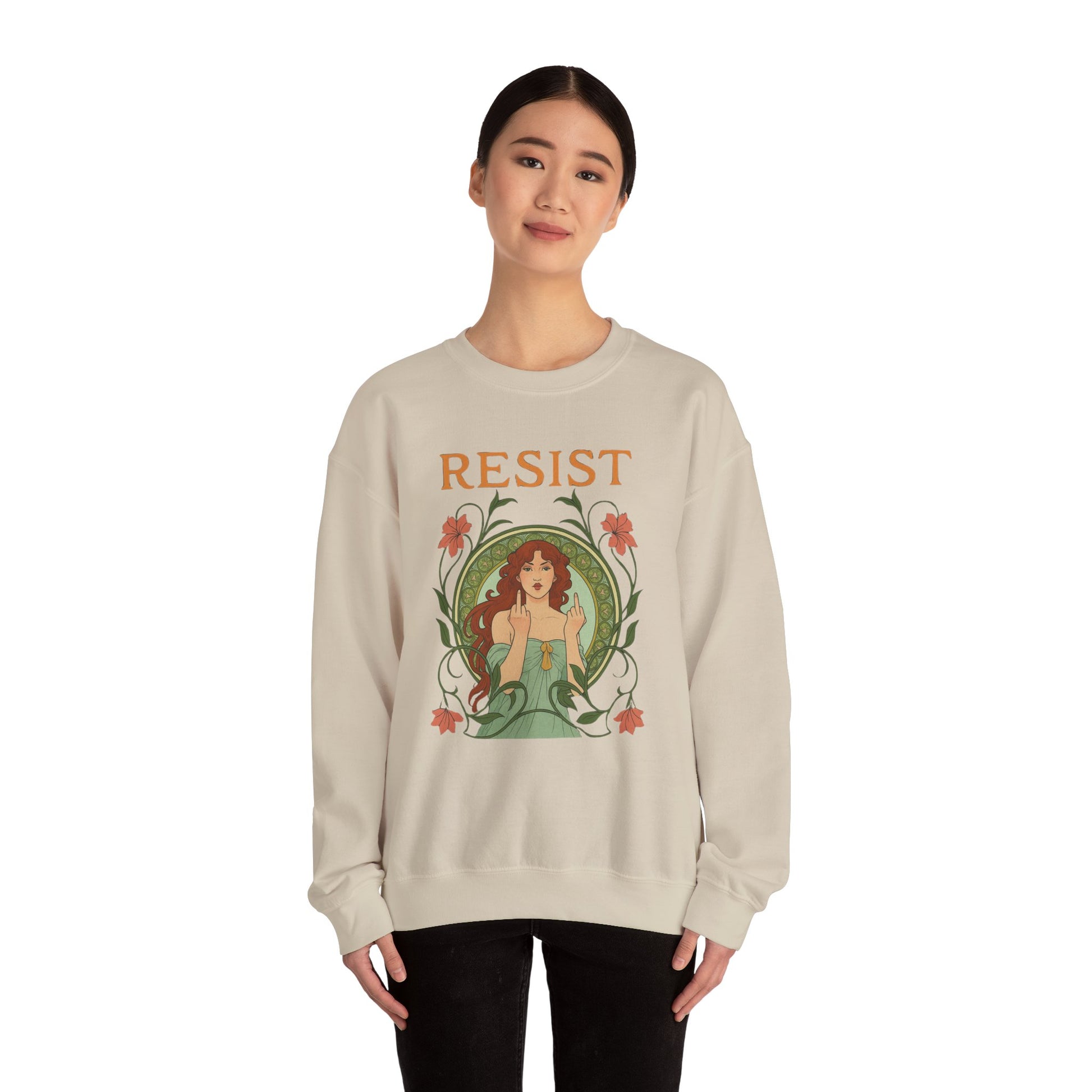 Resist Art Nouveau Woman Sweatshirt, Feminist Vintage Crewneck, Floral Botanical Activist Pullover, Empowerment Gift, Cozy Fall Layer
