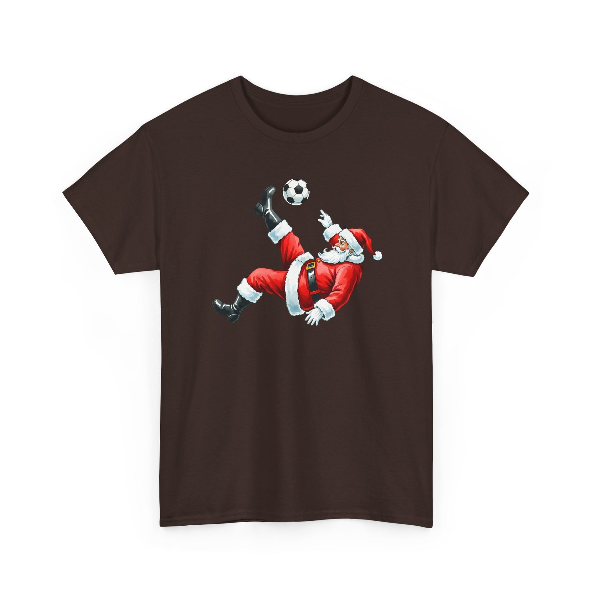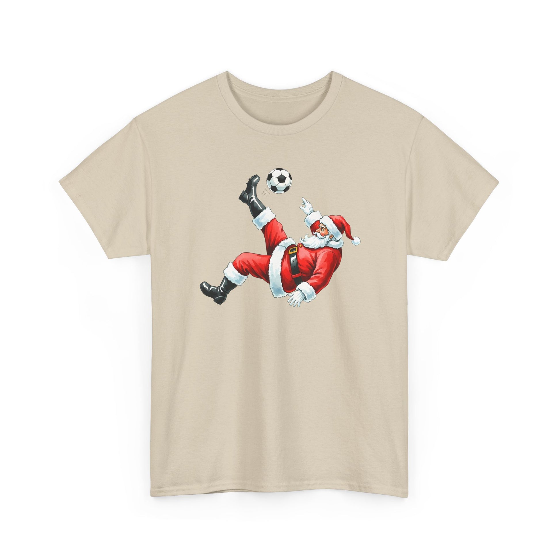 Santa Soccer Heavy Cotton Tee, Fun Holiday Shirt, Christmas Party, Gift for Him/Her, Festive Clothing, Casual Wear, Gift for her