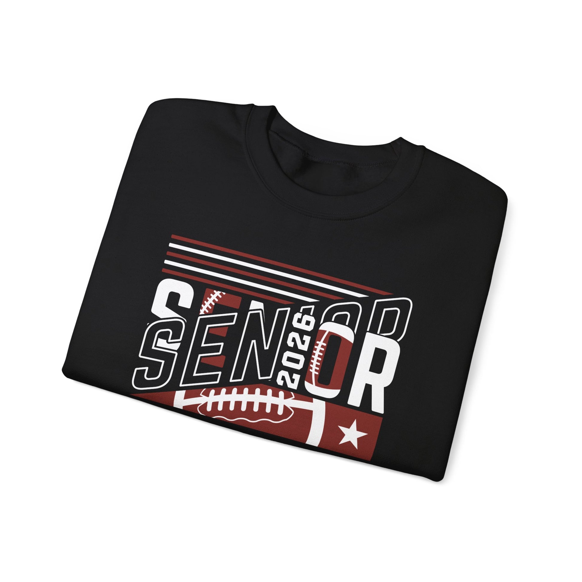 This cozy crewneck brings together classic comfort and proud senior-year spirit. Built from a durable 50/50 cotton‑poly blend with soft, tear‑away neck label and reinforced double‑needle stitching, it feels broken‑in from the first wear and stands up to repeat celebrations. The bold, varsity‑inspired graphic—featuring “SENIOR” with a football motif and the graduation year—reads confident and nostalgic on the deep black fabric. Wear it to game days, senior outings, or low‑key hangouts to carry that last‑season energy with warmth and ease.