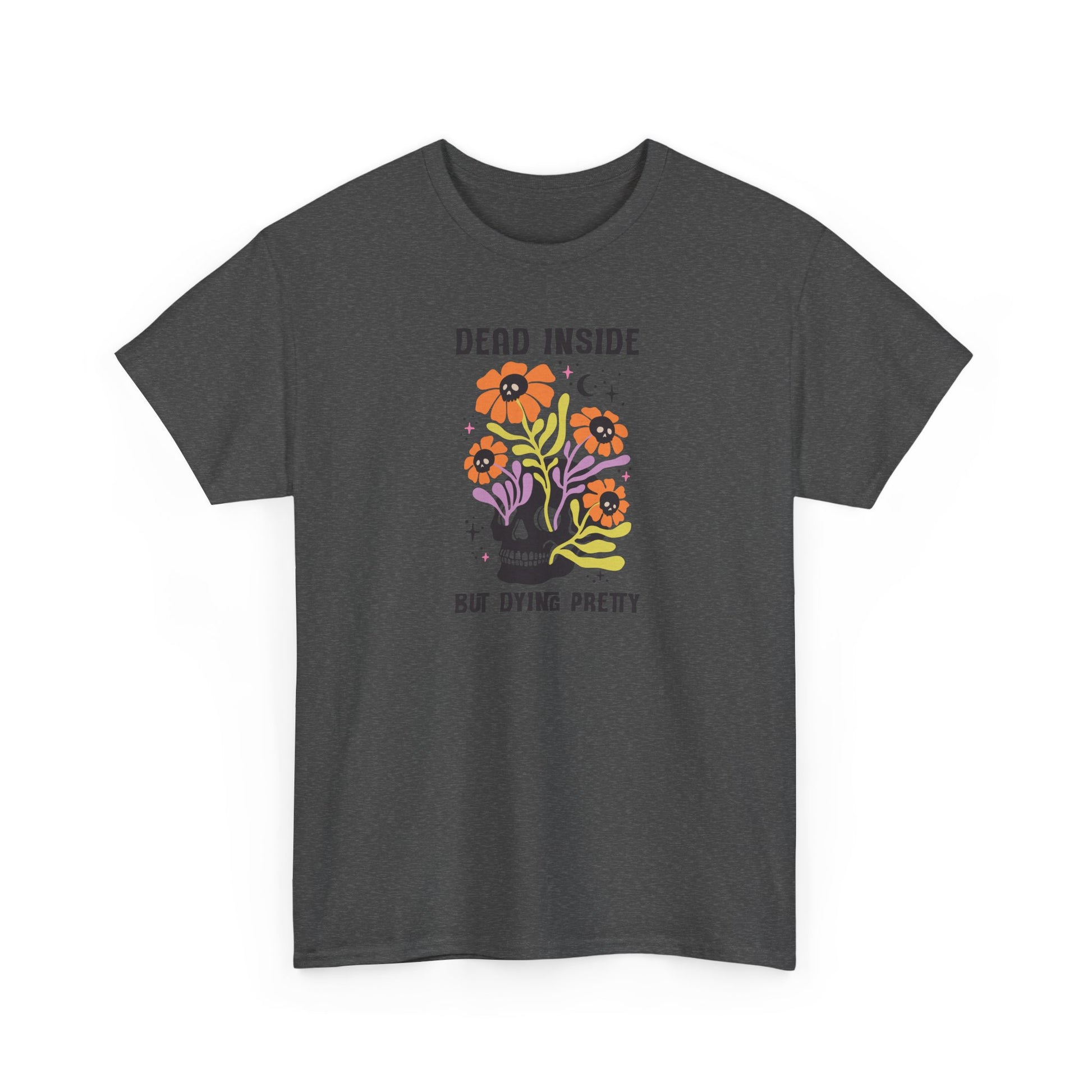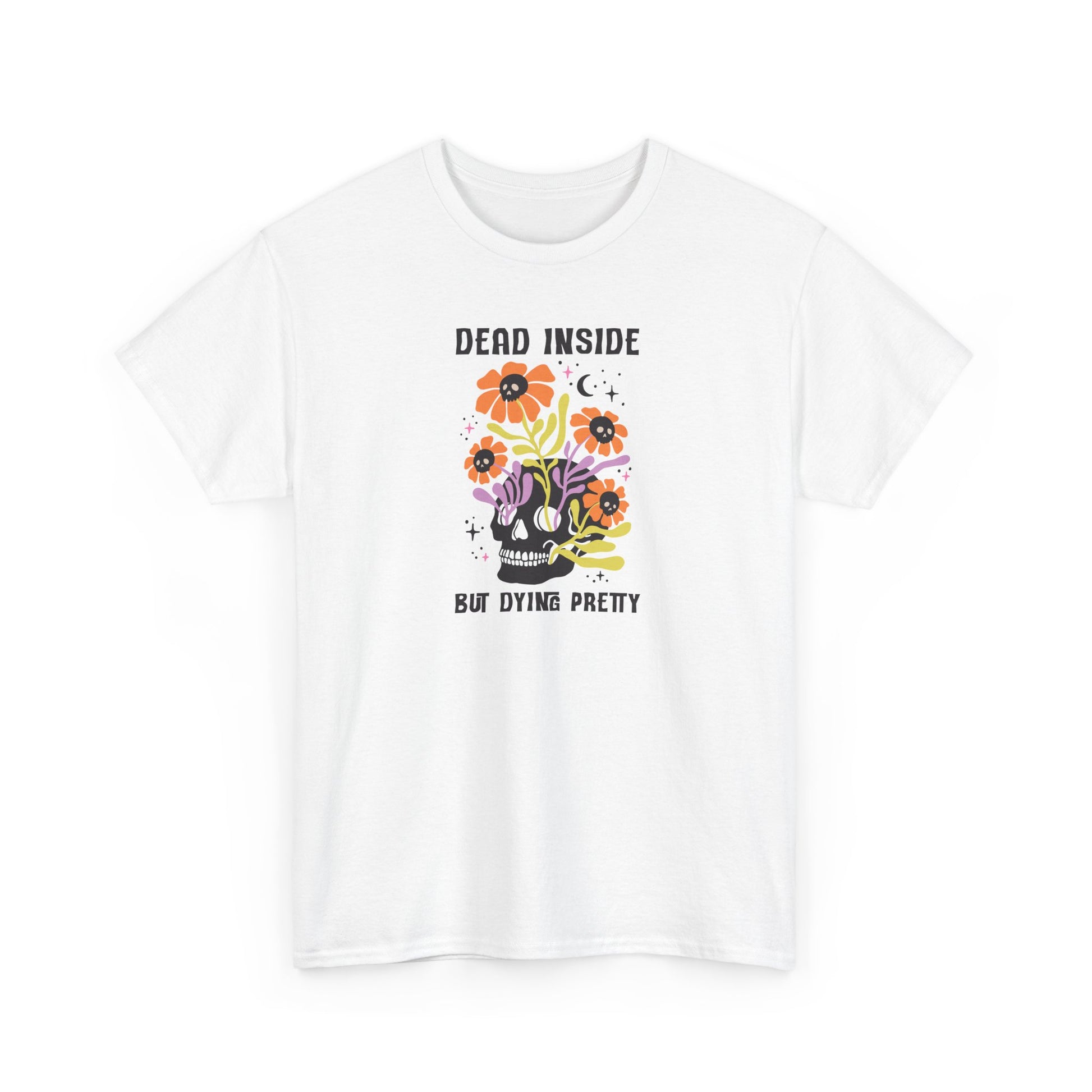 Skull Graphic Tee, Quirky Heavy Cotton T-Shirt, Dead Inside but Dying Pretty, Unisex Casual Wear, 90s Aesthetic, Gift for Friends