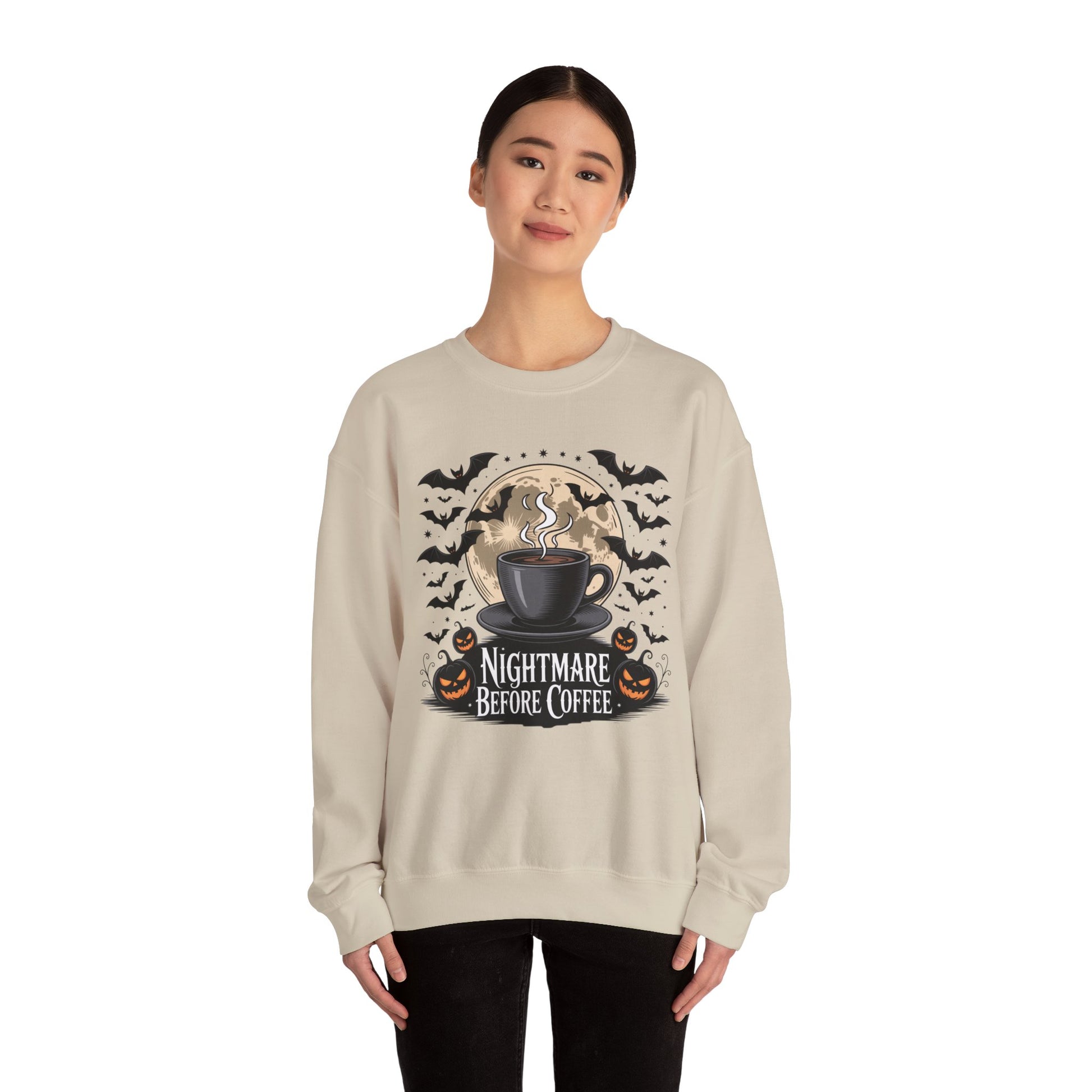 Spooky Coffee Lover's Crewneck Sweatshirt, Cozy Halloween Apparel Unisex Sweatshirt Nightmare Before Coffee Sweatshirt Perfect for Halloween