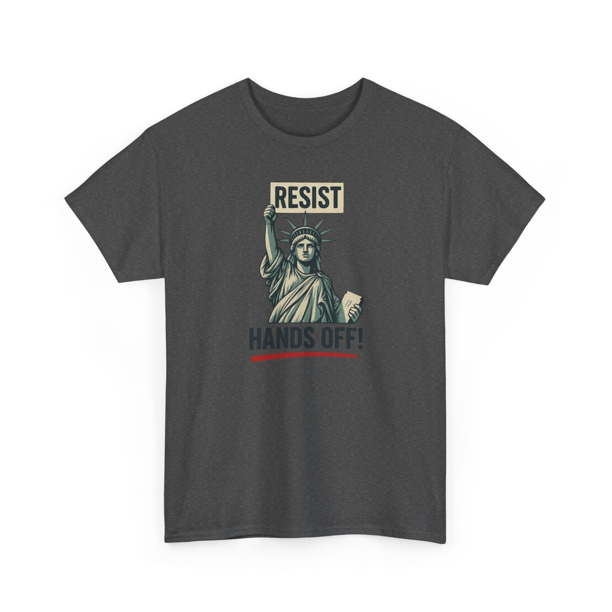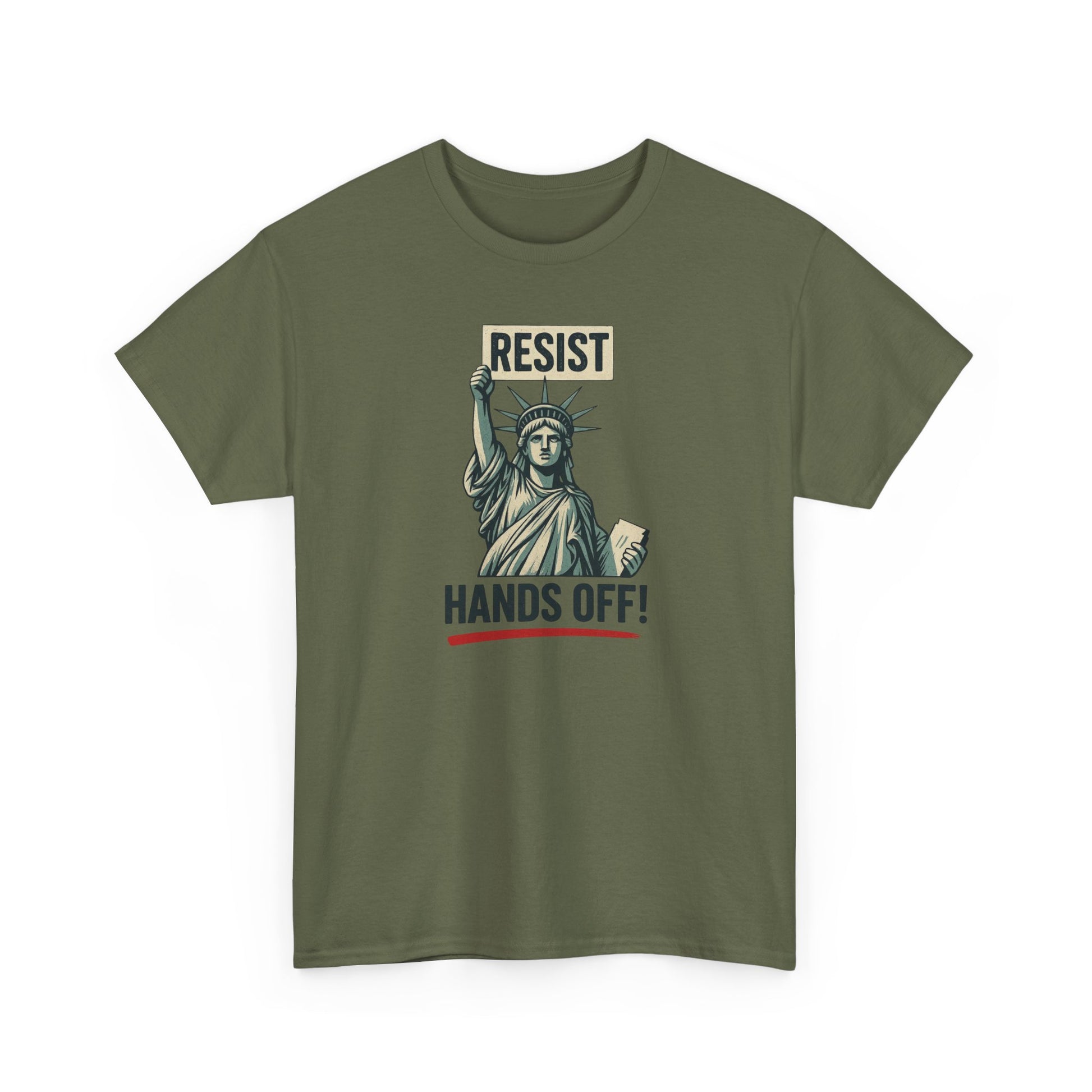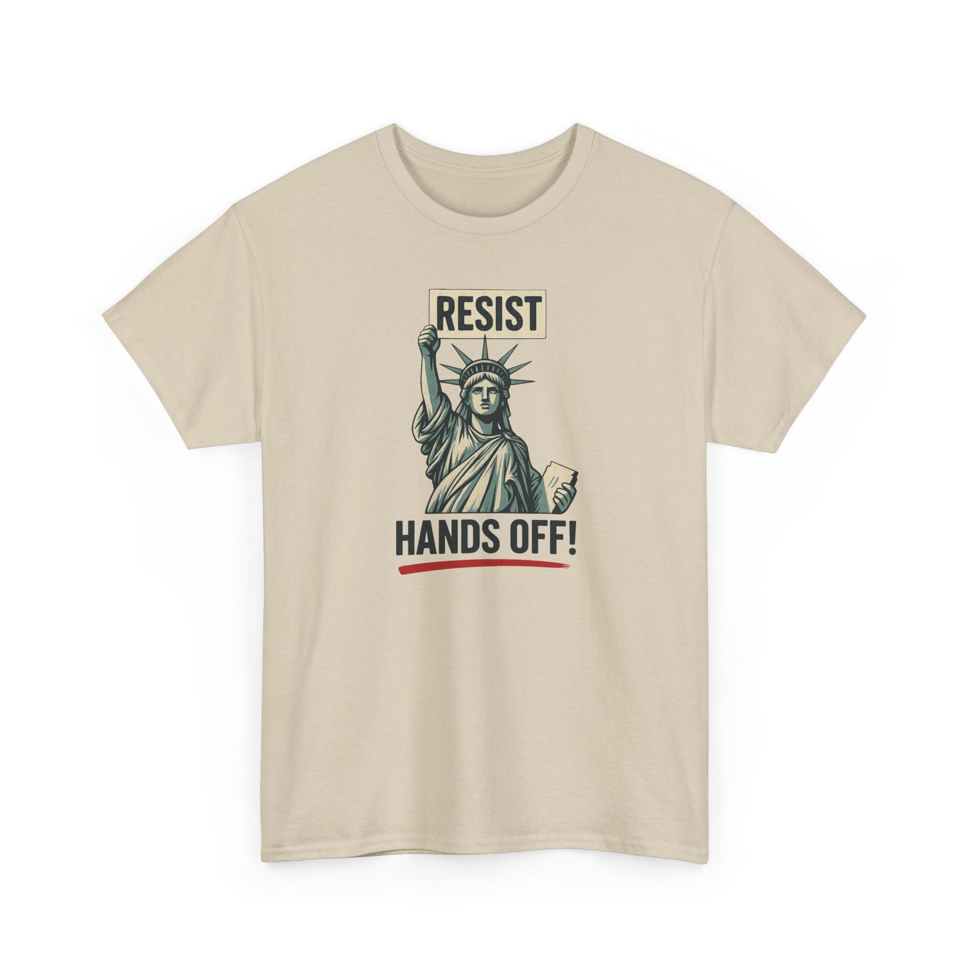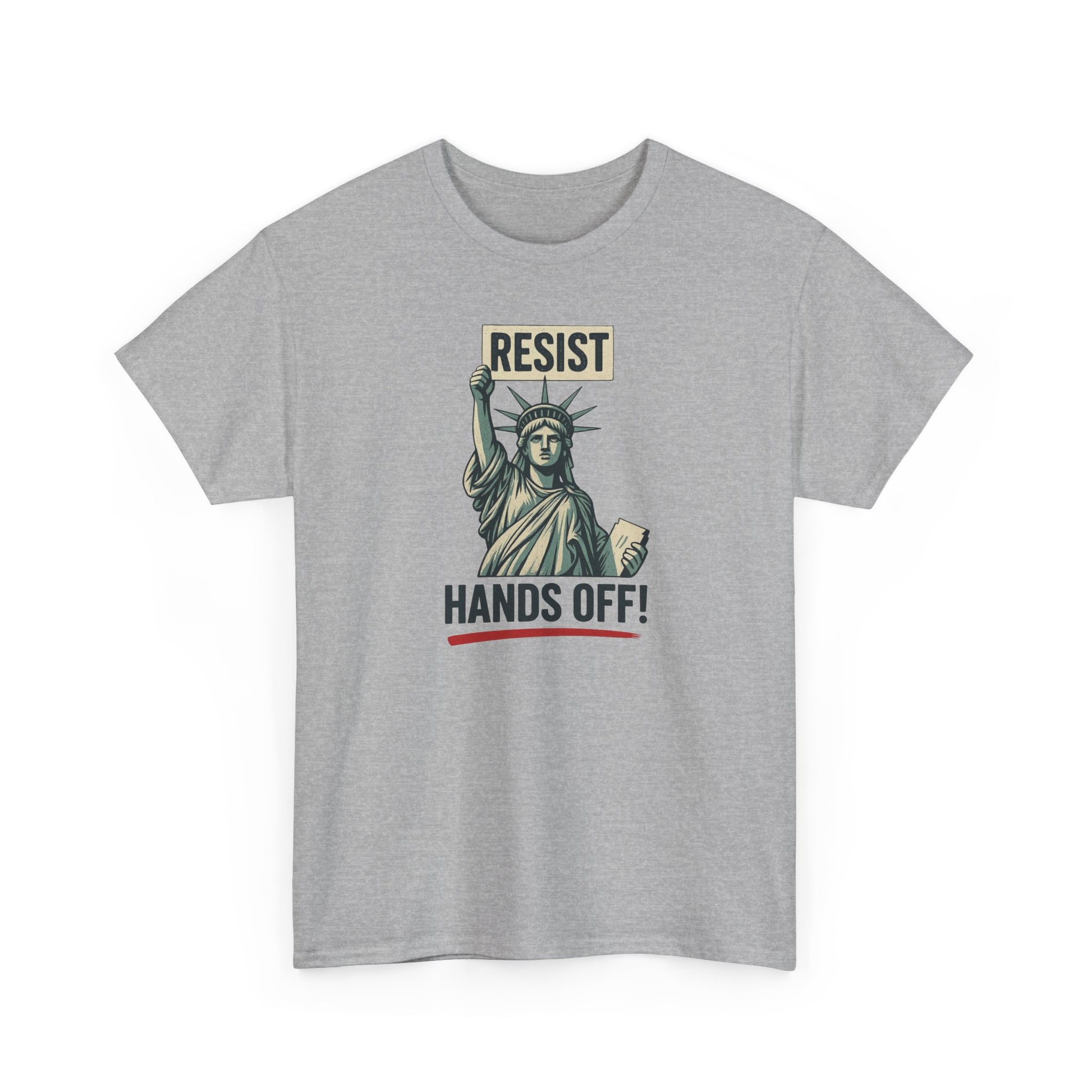 Make your voice heard with this bold and empowering “RESIST HANDS OFF” T-Shirt — featuring the Statue of Liberty holding a protest sign in defense of freedom, equality, and bodily autonomy.