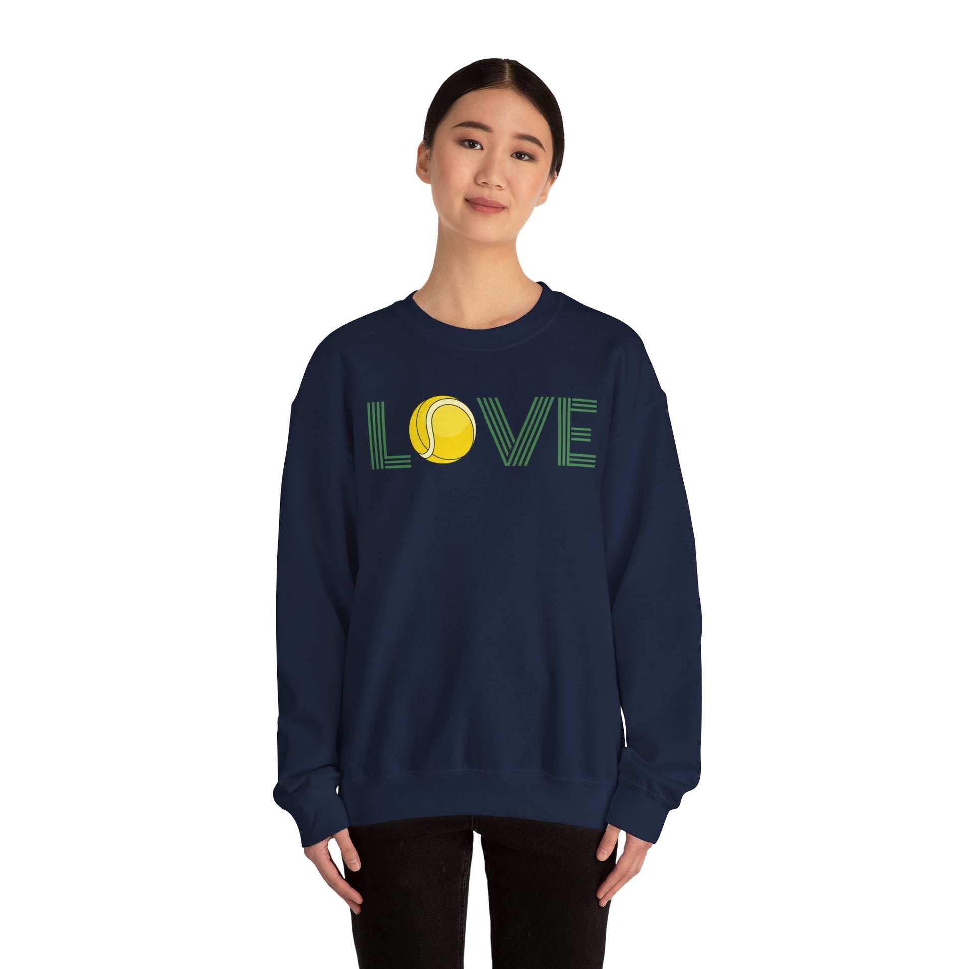 Wrap yourself in cozy court-side style with this tennis sweatshirt for women, designed for players, fans, and proud tennis moms alike. The playful LOVE tennis graphic, featuring a bright tennis ball as the “O,” adds a cheerful sport-inspired touch that feels both nostalgic and modern.