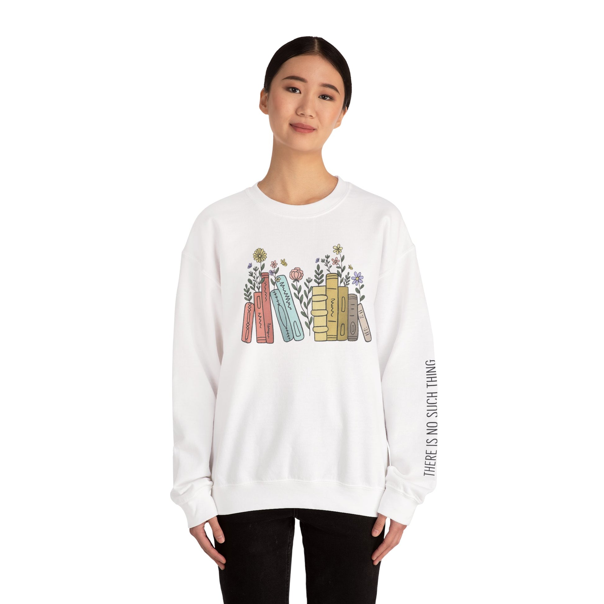 For readers who can never have enough books, this cozy sweatshirt celebrates a love of stories in soft, stylish comfort. The “There Is No Such Thing As Too Many Books” design features a hand-drawn row of colorful books and delicate sprigs, with subtle sleeve text adding a literary touch. Its gentle off-white color and warm, lived-in feel make it perfect for layering, curling up with a novel, or running errands in quiet style.