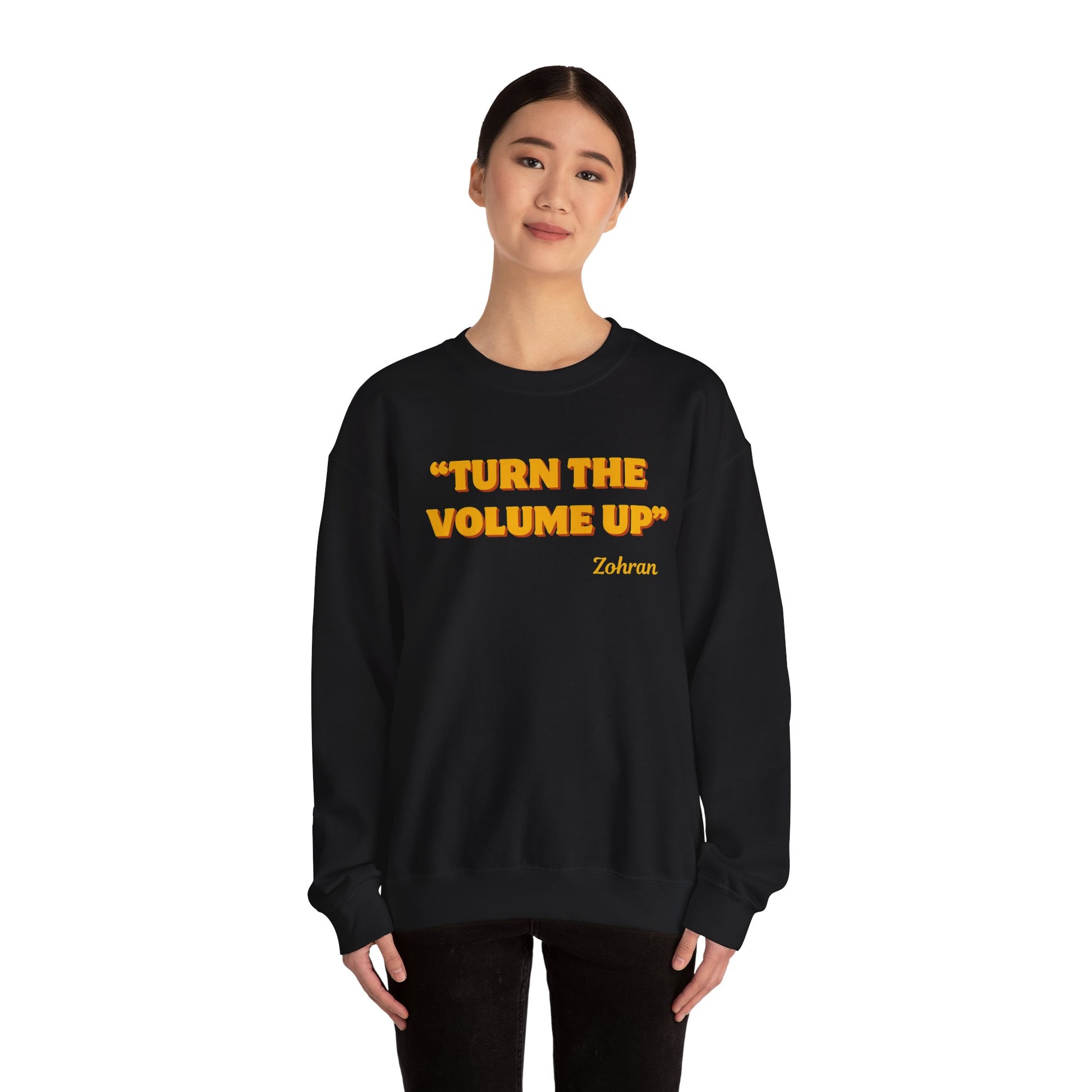 Turn the Volume Up Sweatshirt, Retro Music Quote Crewneck, Minimal Yellow Text Pullover, Cozy Gift for Musicians & Creatives
