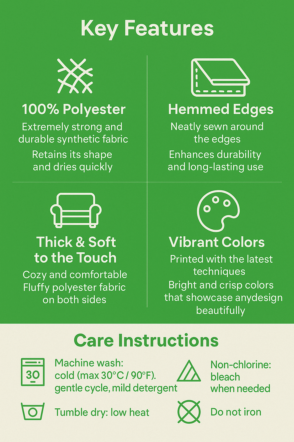 • Hemmed Edges – Expertly stitched edges add durability and a polished finish for long-lasting use.