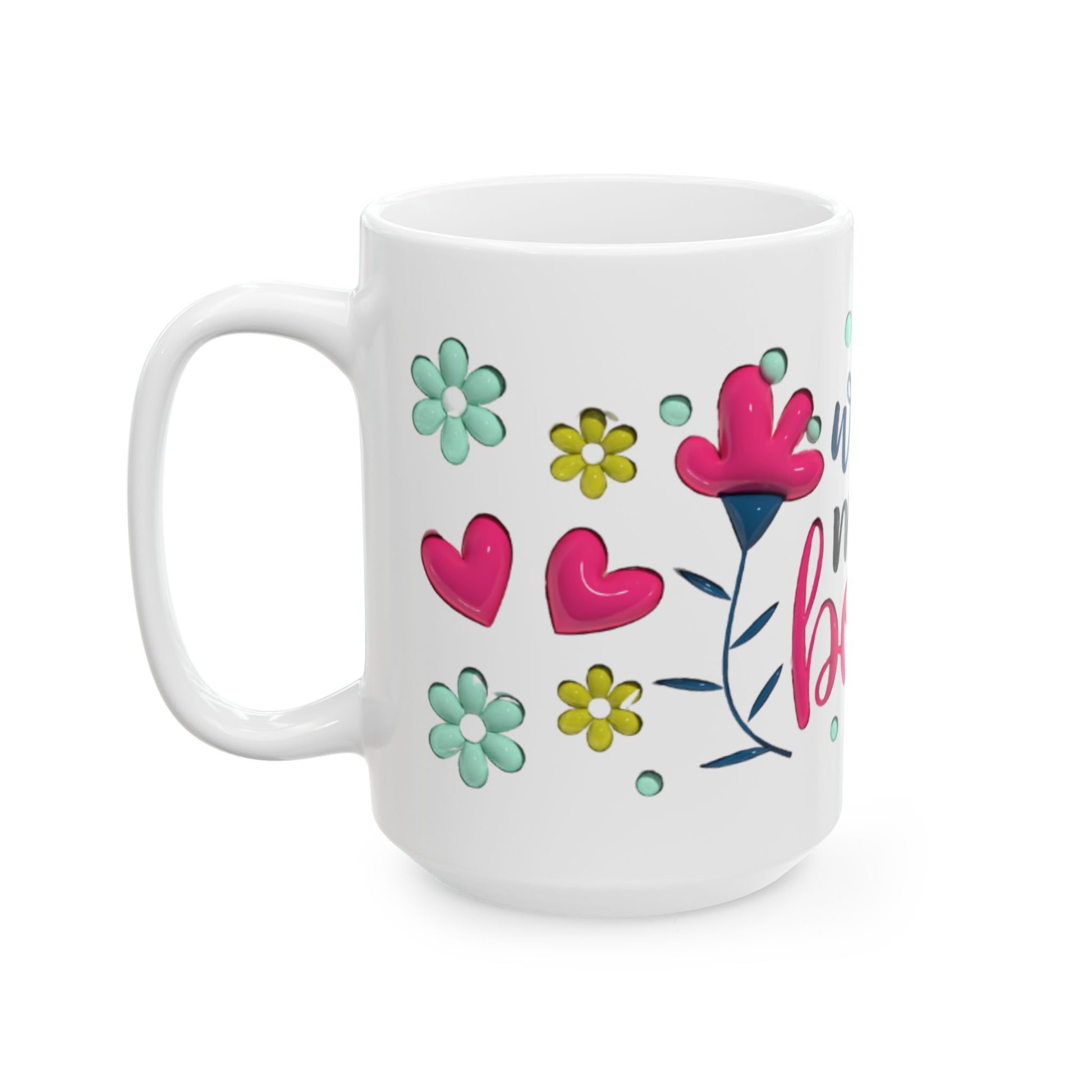 Crafted from glossy white ceramic, the mug feels sturdy yet lightweight, and the smooth C-handle makes it comfortable to carry through errands, meetings, crafting sessions, or late-night planning moments. The vibrant full-color print stays crisp wash after wash, so it remains a joyful part of your daily ritual.
